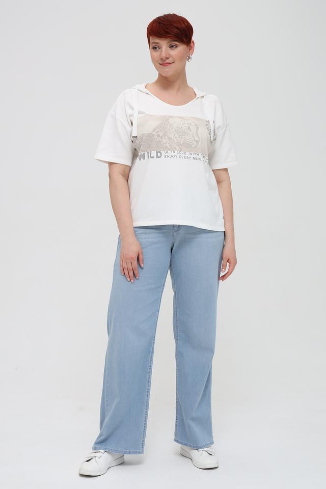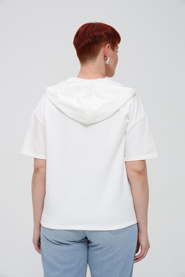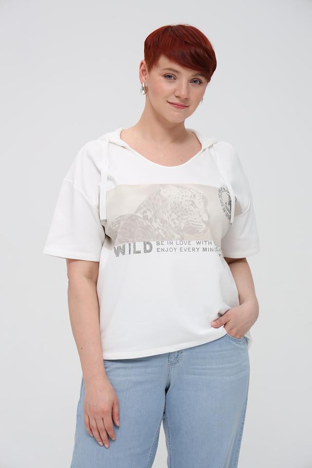 Белая блуза Monari с оригинальным принтом "Wild" и короткими рукавами станет стильным дополнением к вашему гардеробу. Модель с капюшоном и свободным кроем обеспечивает комфорт и свободу движений. Состав: хлопок 70%, полиэстер 30%