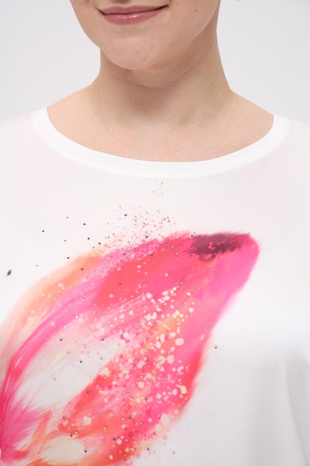 Белая футболка Monari с ярким цветочным принтом – стильное и комфортное решение для повседневного образа. Изготовлена из лёгкой ткани, обеспечивающей свободу движений и приятные ощущения на коже. Состав: полиэстер 100%, Состав_2 вискоза 92%, Состав_2 эластан 8%