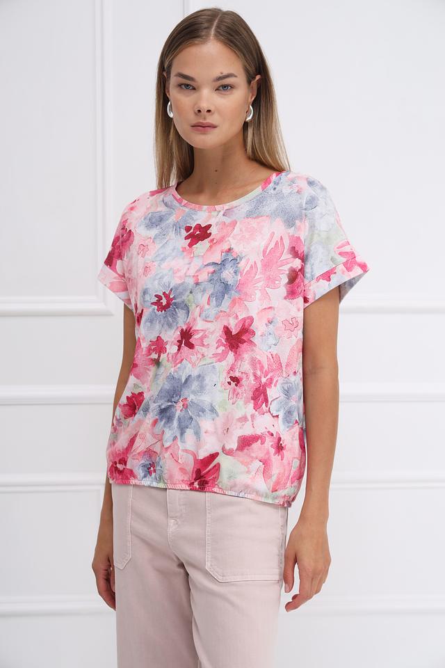 Женская футболка Monari нежно-розового цвета с ярким цветочным принтом станет отличным дополнением к вашему гардеробу. Модель выполнена из мягкого и приятного к телу сочетания хлопка и модала, обеспечивая комфорт в течение всего дня. Состав: хлопок 50%, модал 50%