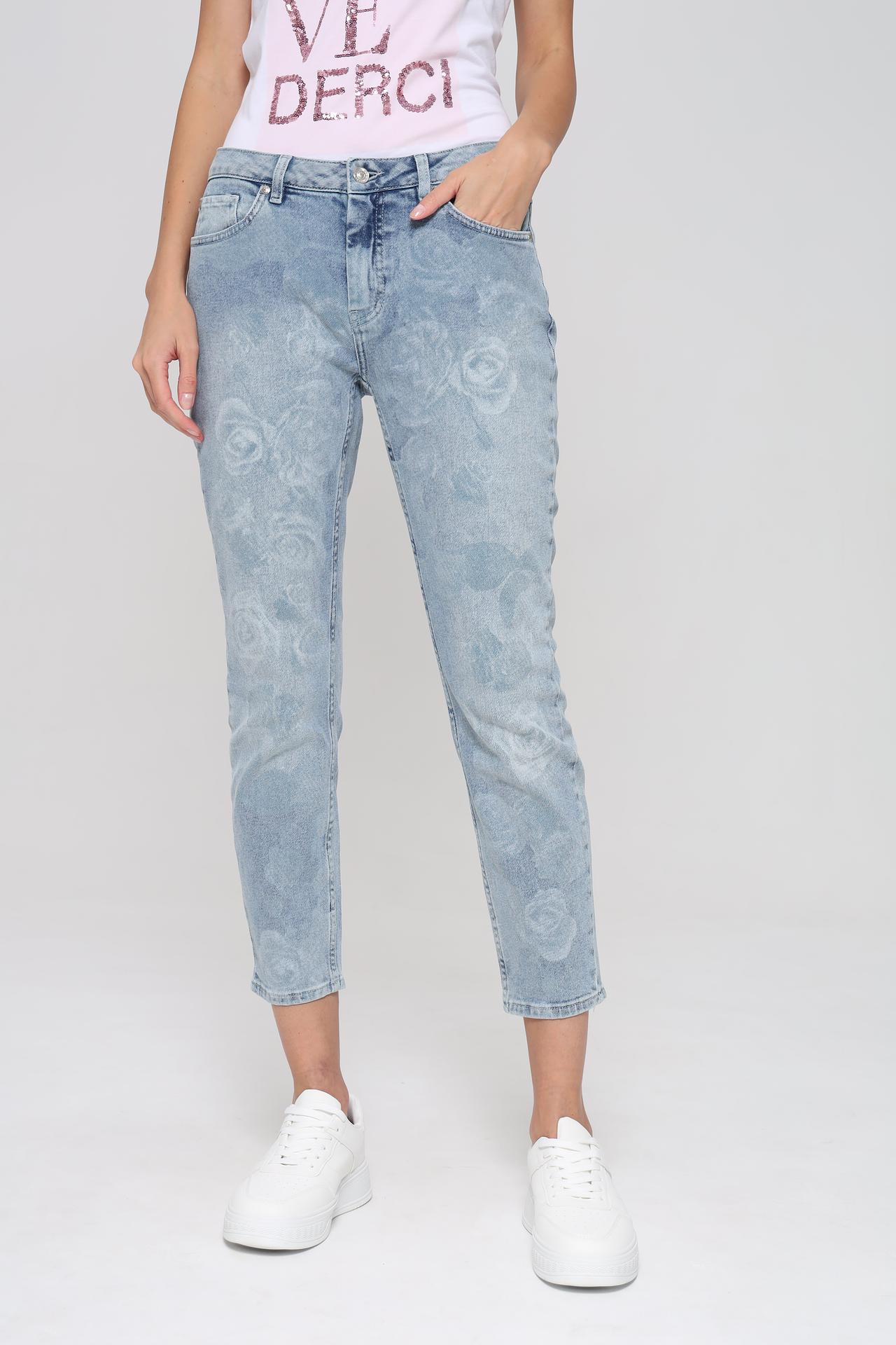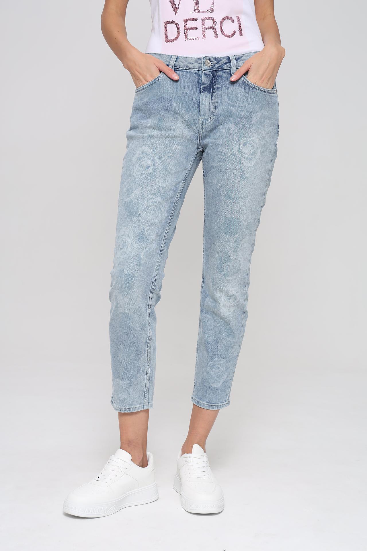 Джинсы Monari с цветочным принтом светло-голубого цвета