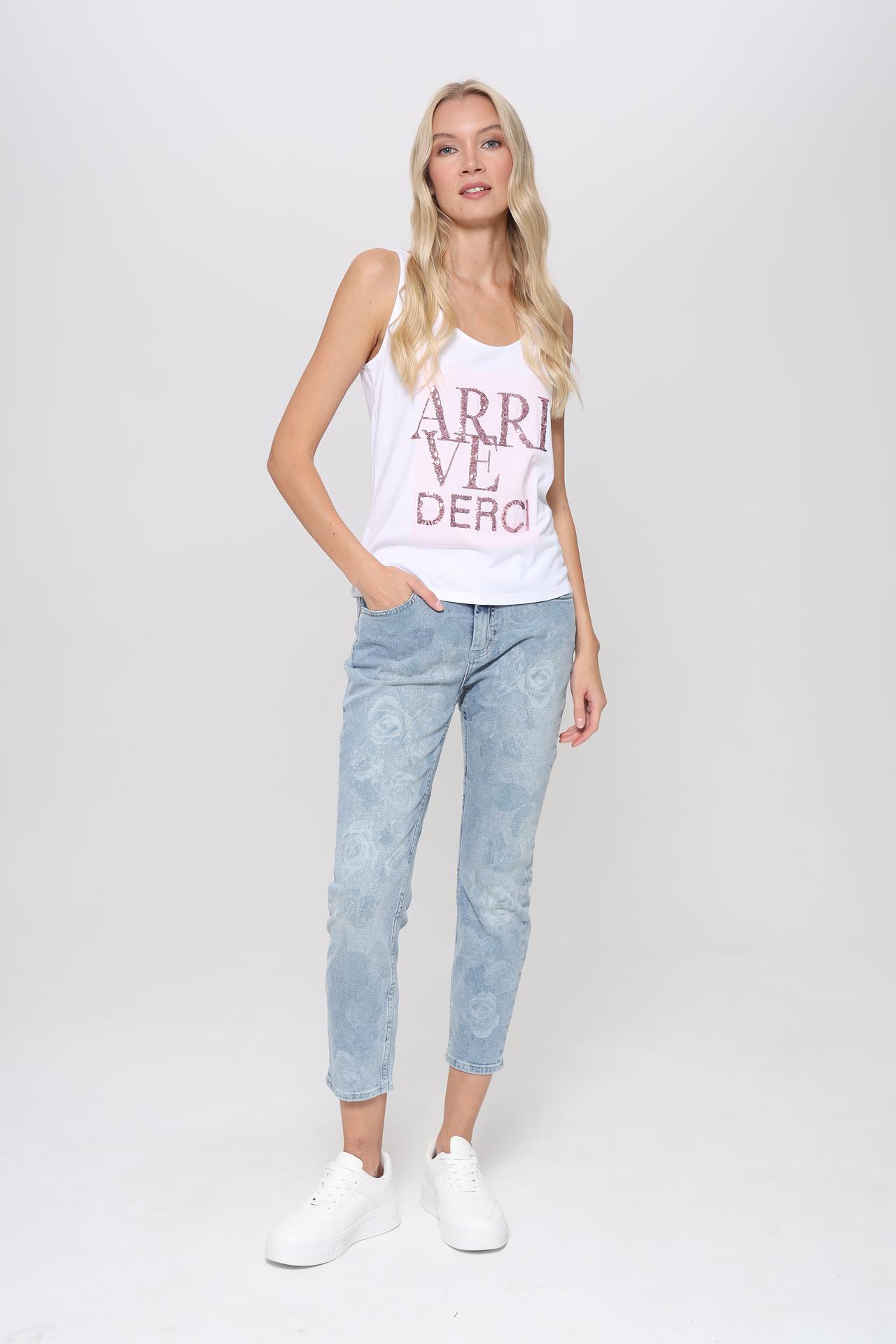 Джинсы Monari, выполненные из денима с нежным цветочным принтом, станут прекрасным дополнением к вашему повседневному гардеробу. Изготовлены из премиального хлопка с добавлением эластана, что обеспечивает идеальную посадку и комфорт в движении. Эта модель джинсов сочетает в себе классический стиль и современные тенденции.