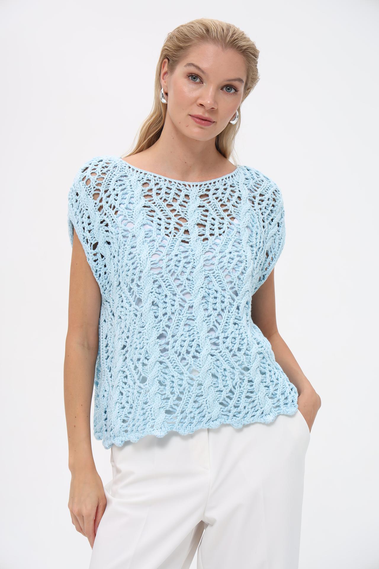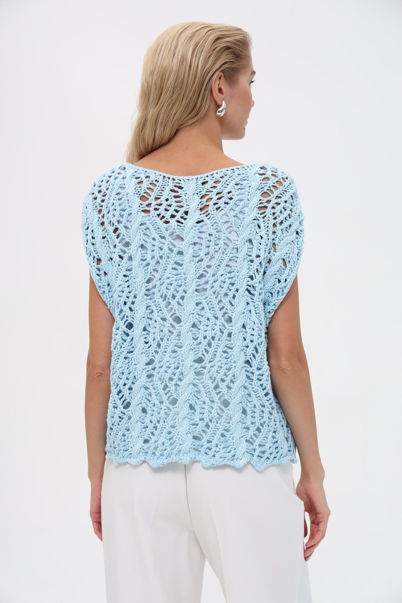 - Ажурная вязка: Оригинальный узор придает пуловеру изысканность и неповторимый стиль.