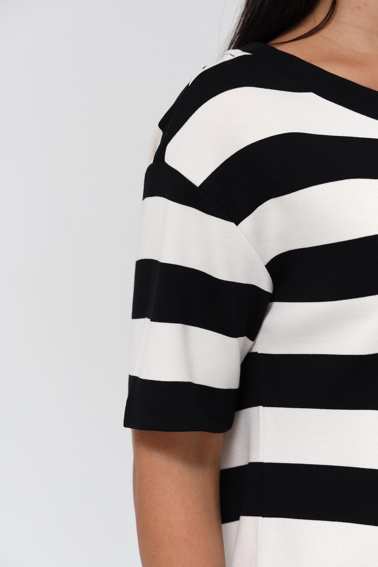 - Дизайн в полоску. Классический чёрно-белый полосатый принт придает футболке стильный и всегда актуальный вид, делая её идеальным выбором для любого случая.