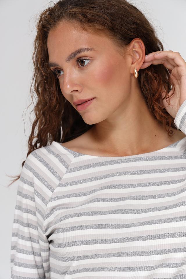 Женская футболка Monari серого цвета с полоской – это стильная и комфортная модель с длинным рукавом и округлым вырезом. Изготовлена из мягкого трикотажа с добавлением вискозы и эластана, обеспечивающего удобную посадку. Состав: полиэстер 62%, вискоза 30%, эластан 4%, метализ.полиэстер 4%
