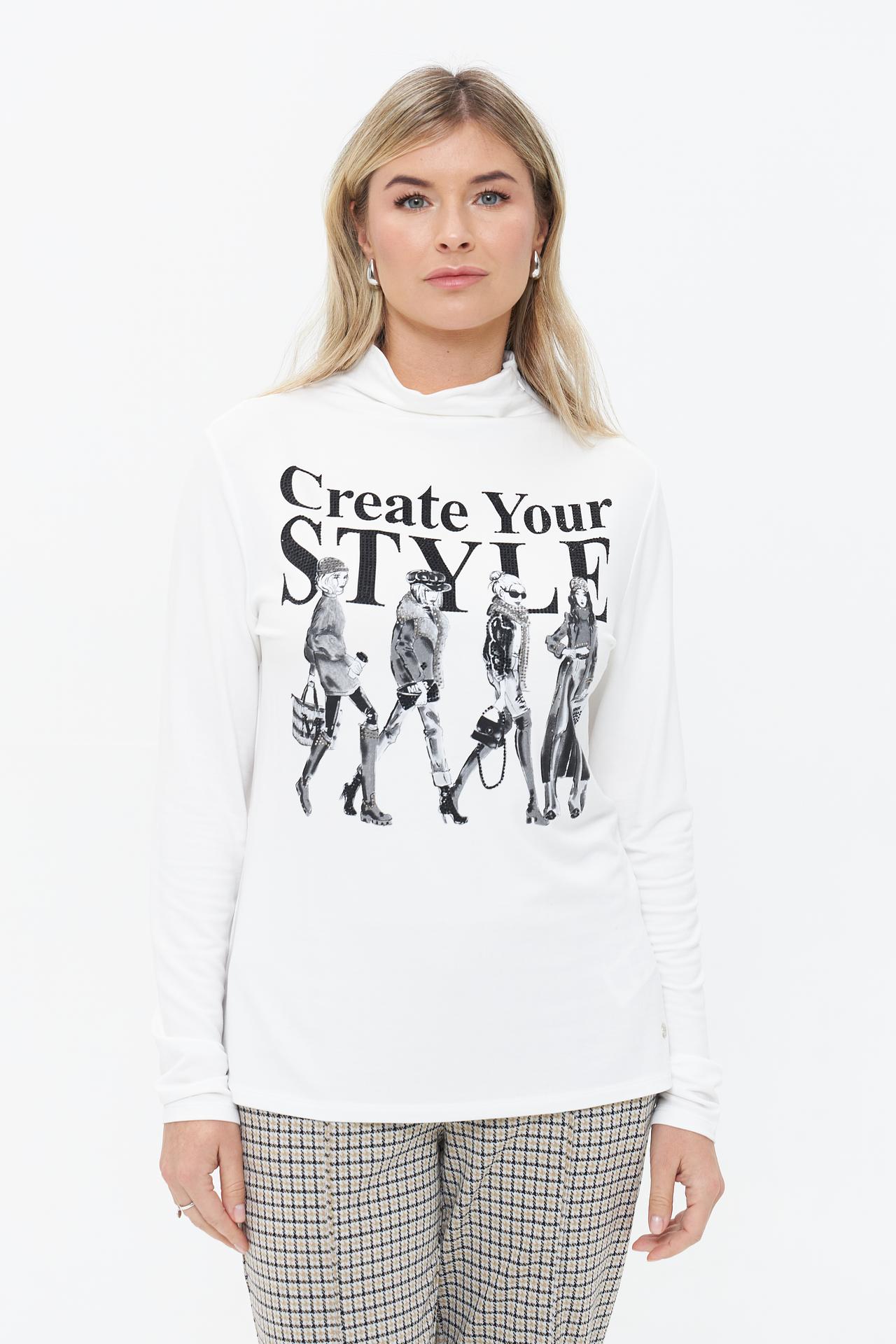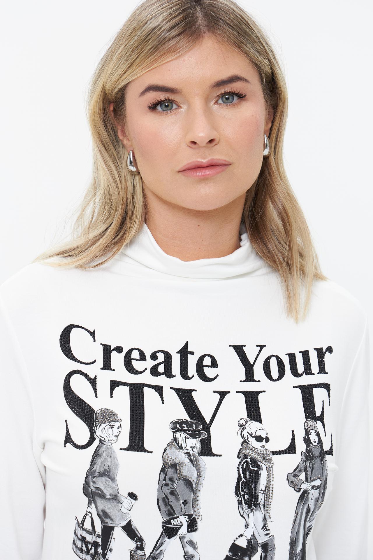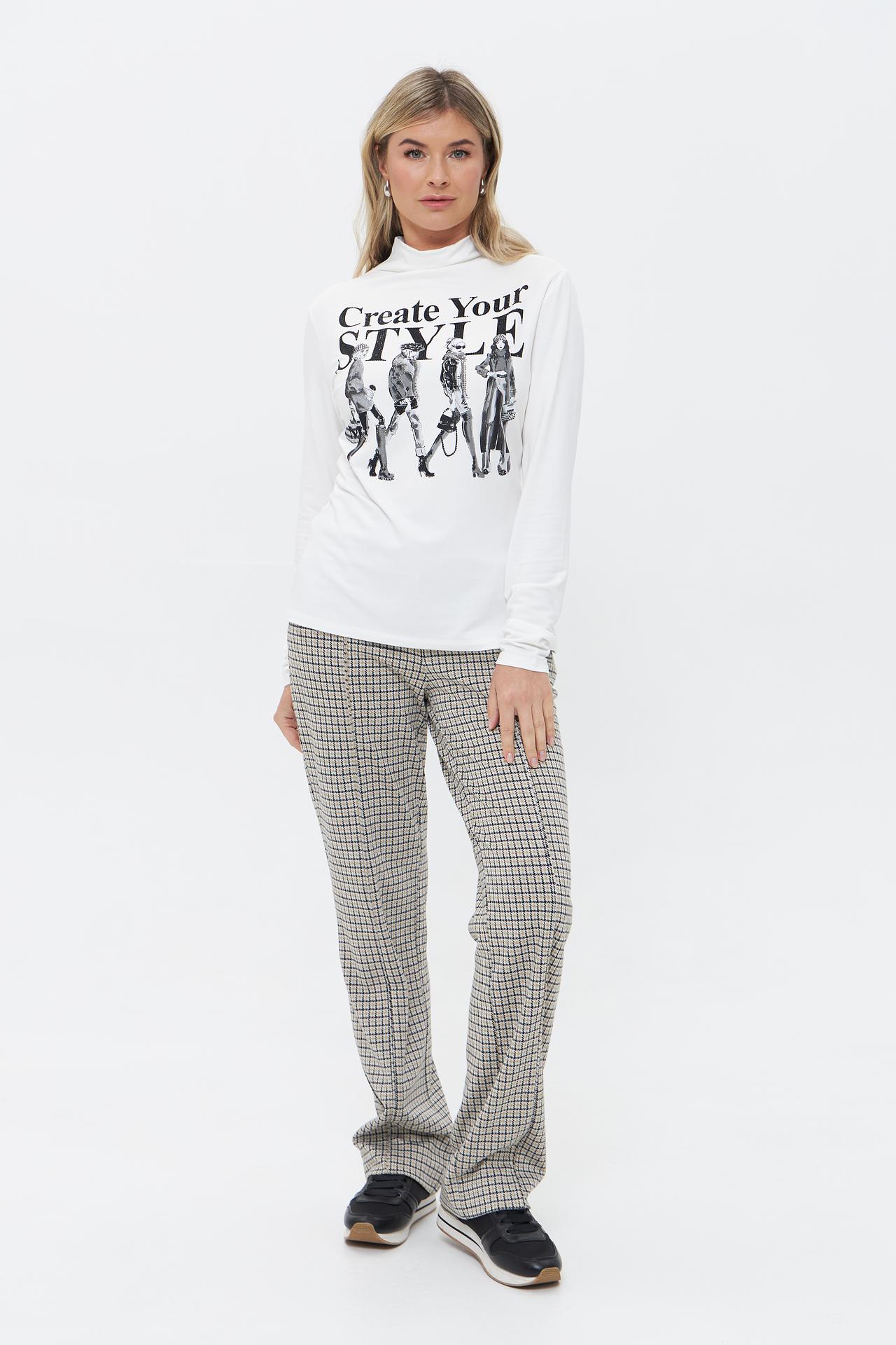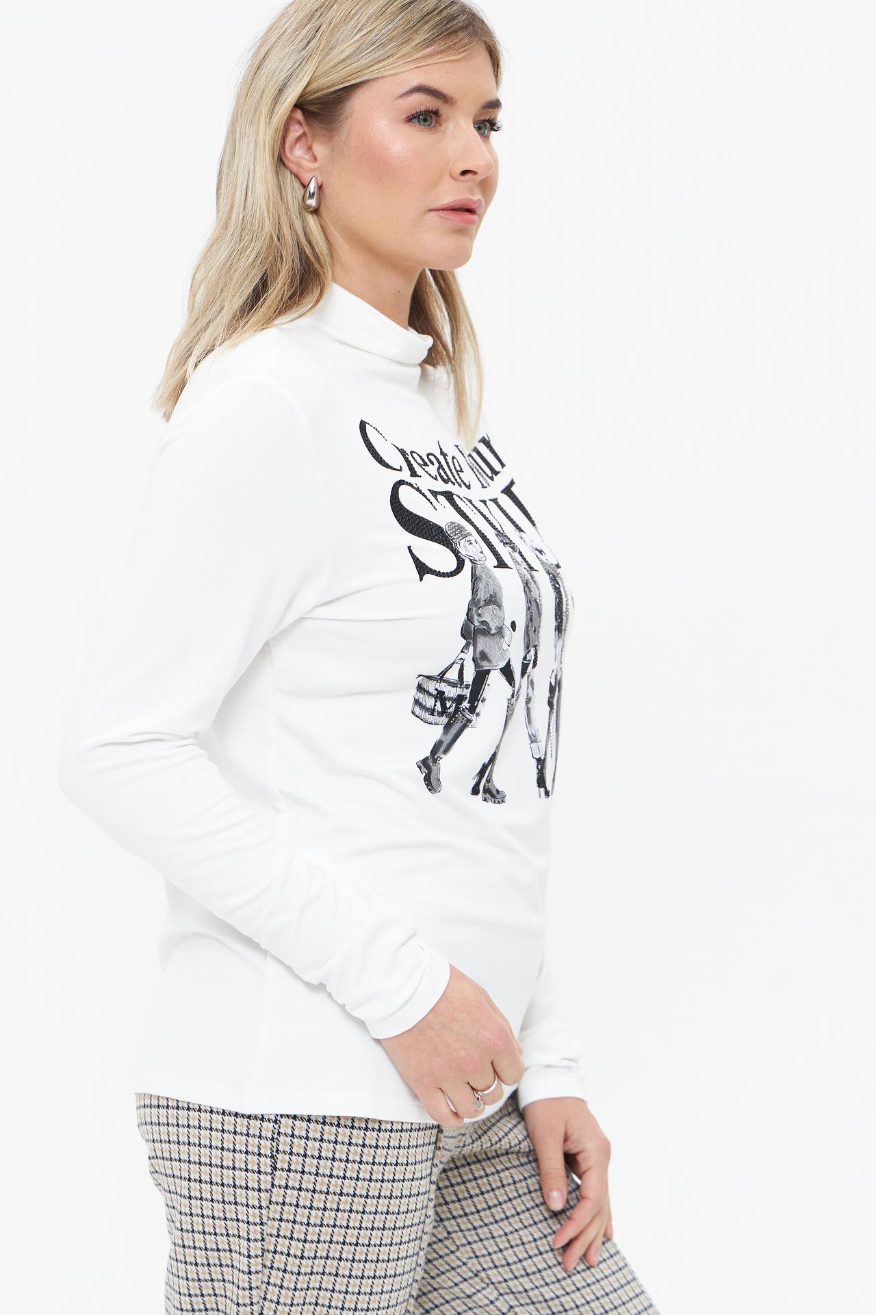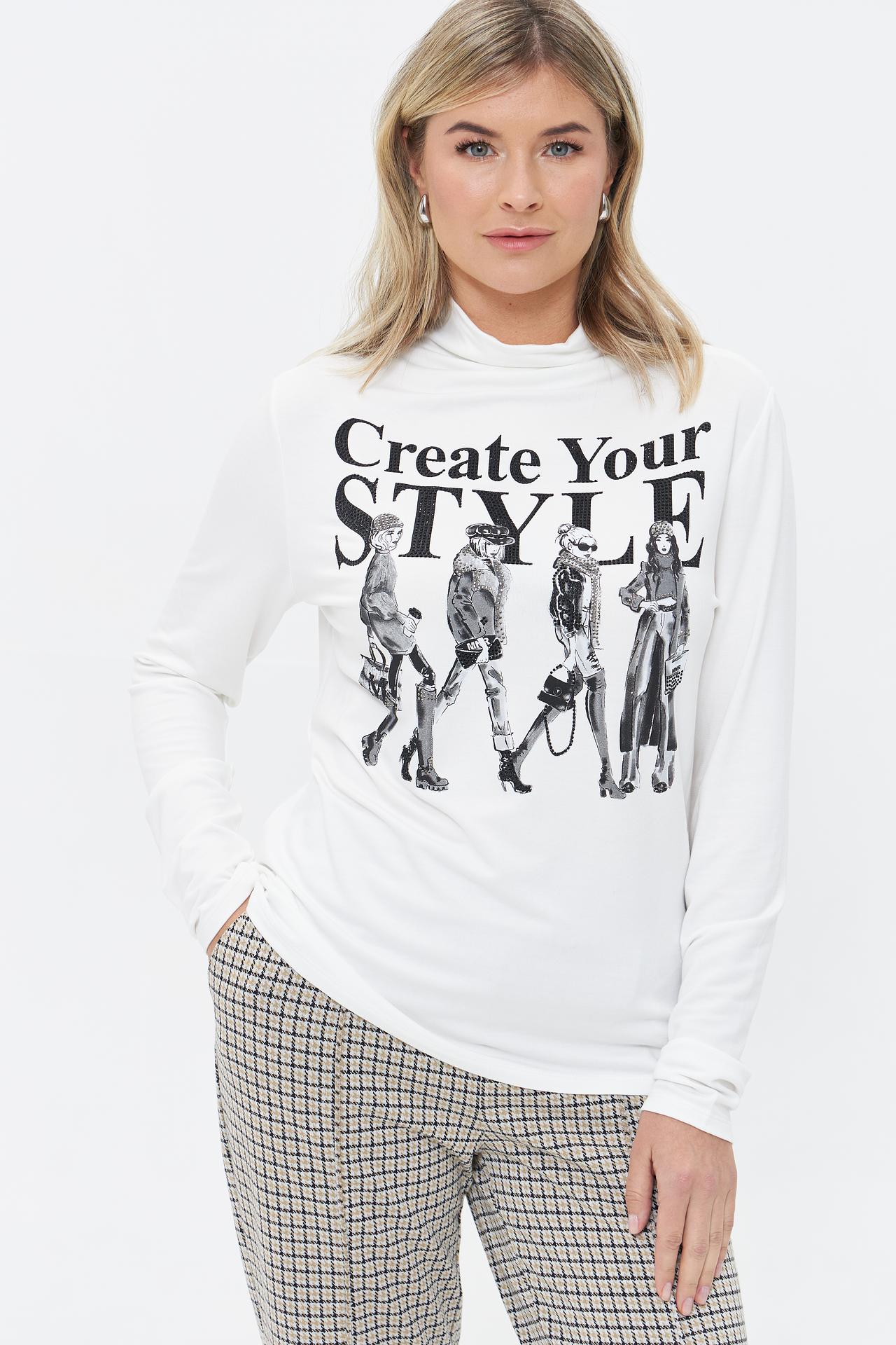 Элегантная белая футболка от Monari станет стильным дополнением вашего гардероба. Изготовленная из приятной на ощупь ткани, футболка обеспечивает комфорт в течение всего дня. Модный принт с изображением стильных девушек придает образу индивидуальность и шарм.