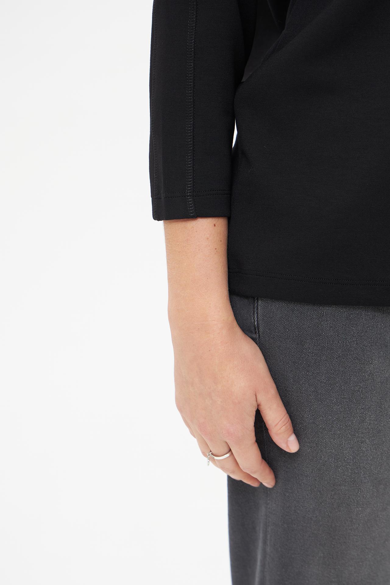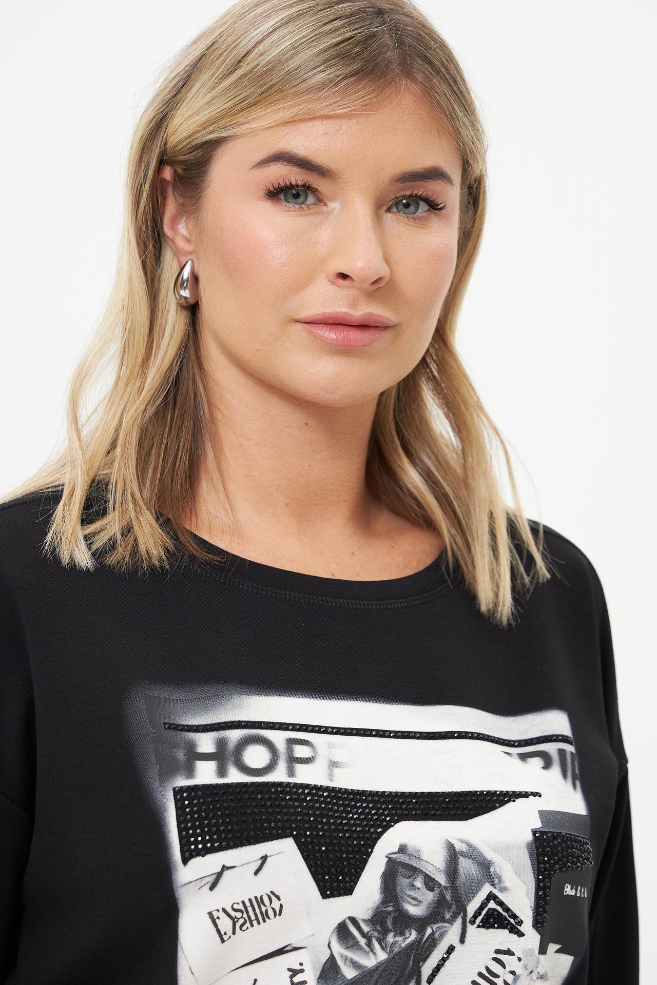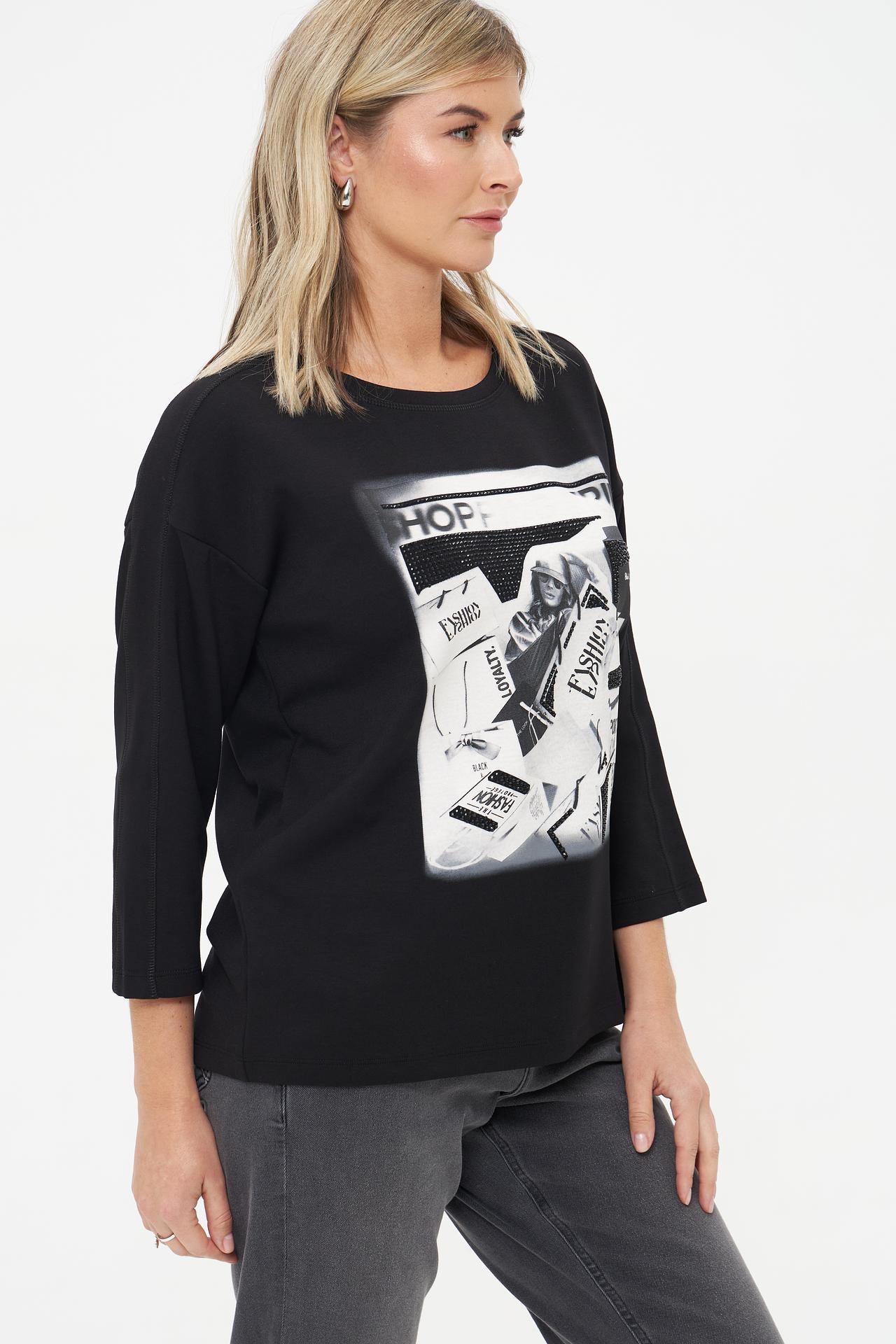 Элегантная футболка Monari чёрного цвета станет основой вашего модного образа. Модель свободного кроя с рукавами длиной 3/4 дополнена эффектным принтом в стиле коллаж, украшенным мерцающими стразами. Этот элемент придает футболке особый шик и привлекает внимание.