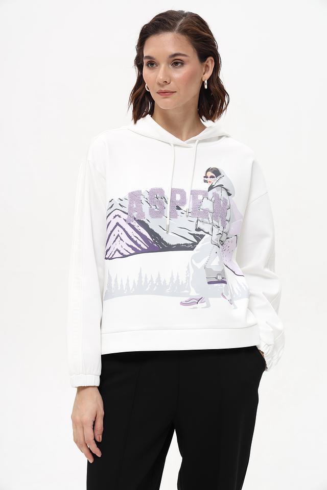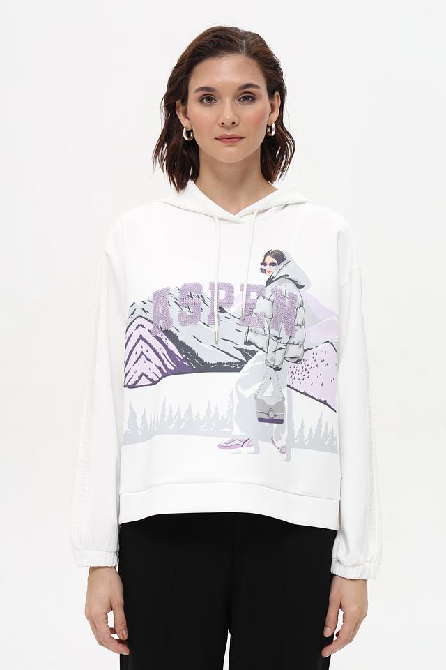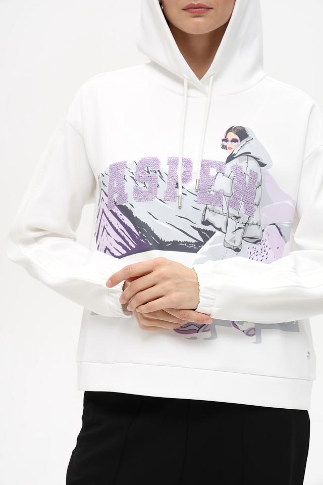 Белый худи Monari с ярким горнолыжным принтом. Изготовлен из мягкого полиэстера с добавлением эластана для комфорта и свободы движений. Состав: полиэстер 96%, эластан 4%
