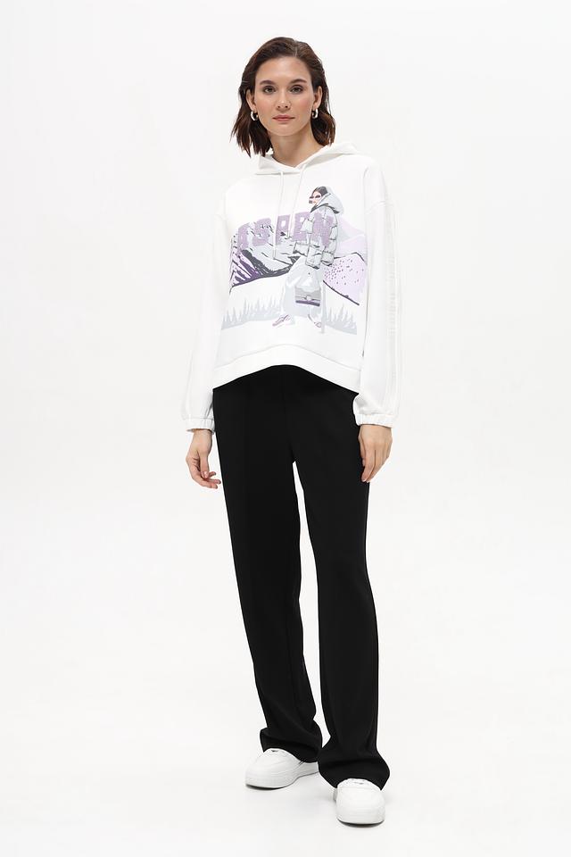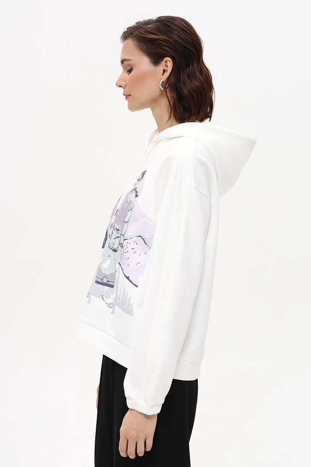 Этот стильный худи от Monari станет отличным дополнением к вашему гардеробу. Выполненный в белом цвете, он украшен эффектным принтом с изображением горнолыжника на фоне заснеженных гор.