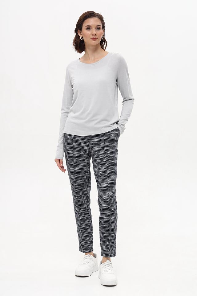 Футболка имеет классический крой с длинными рукавами и круглым вырезом горловины. Благодаря своему лаконичному дизайну, она легко сочетается с различными элементами одежды – от джинсов и брюк до юбок и шорт.