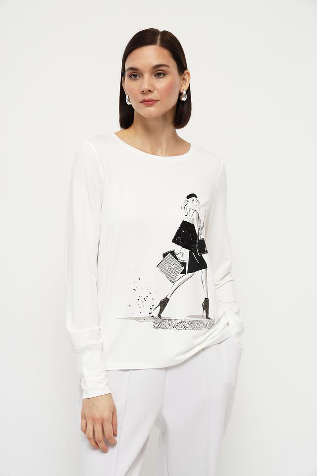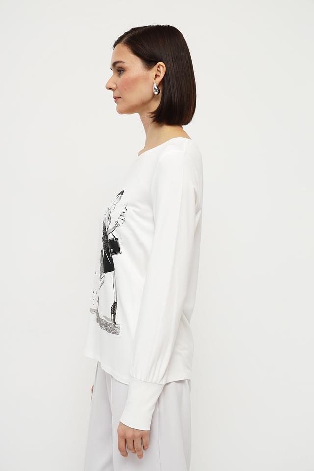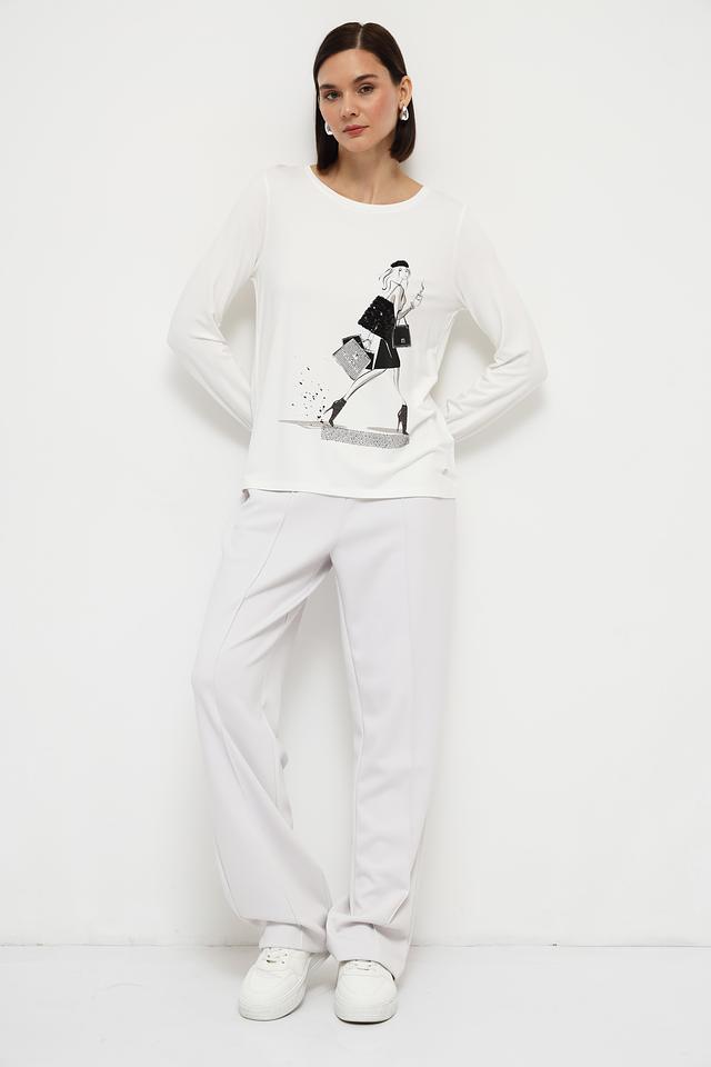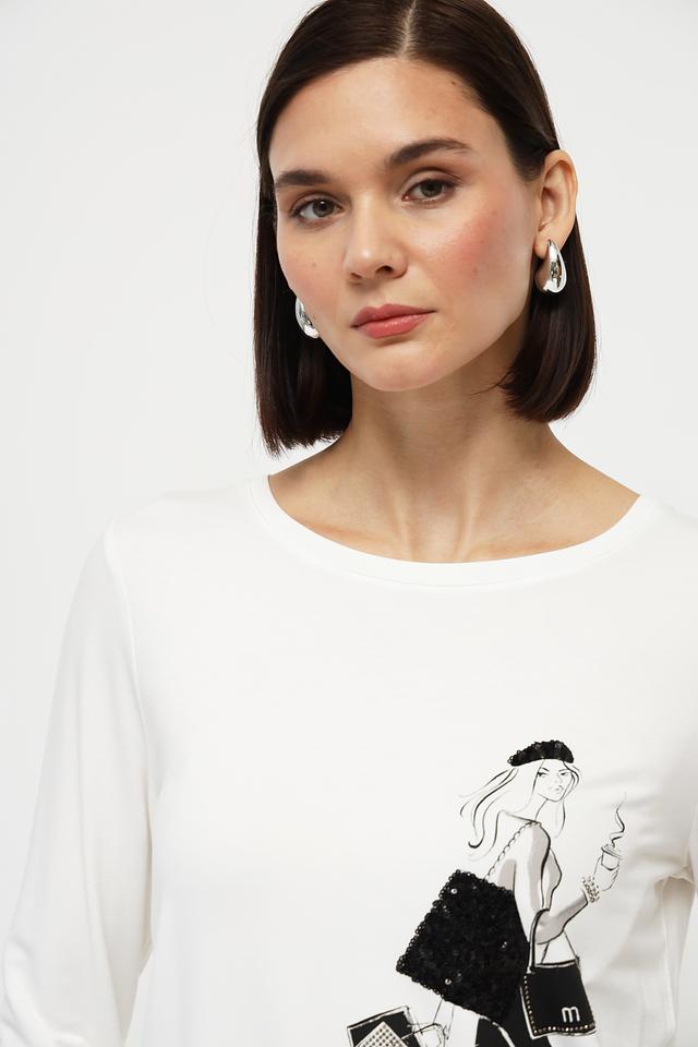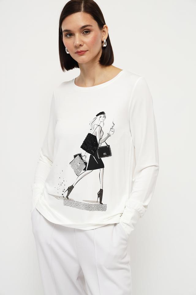 Белый лонгслив Monari с оригинальным принтом в виде девушки. Изготовлен из мягкой и приятной к телу вискозы с добавлением модала и эластана. Состав: вискоза 70%, модал 25%, эластан 5%