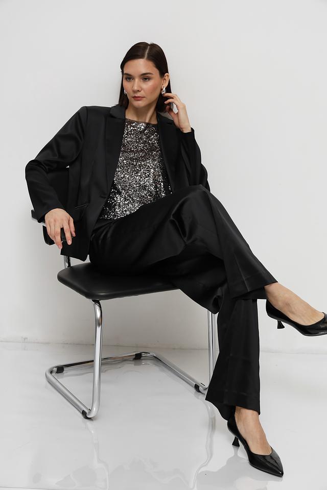 Эта блузка идеально подойдет для особых случаев, вечеринок или других мероприятий, где вы хотите выглядеть стильно и привлекательно. Она прекрасно сочетается с брюками, юбками и другими элементами гардероба.