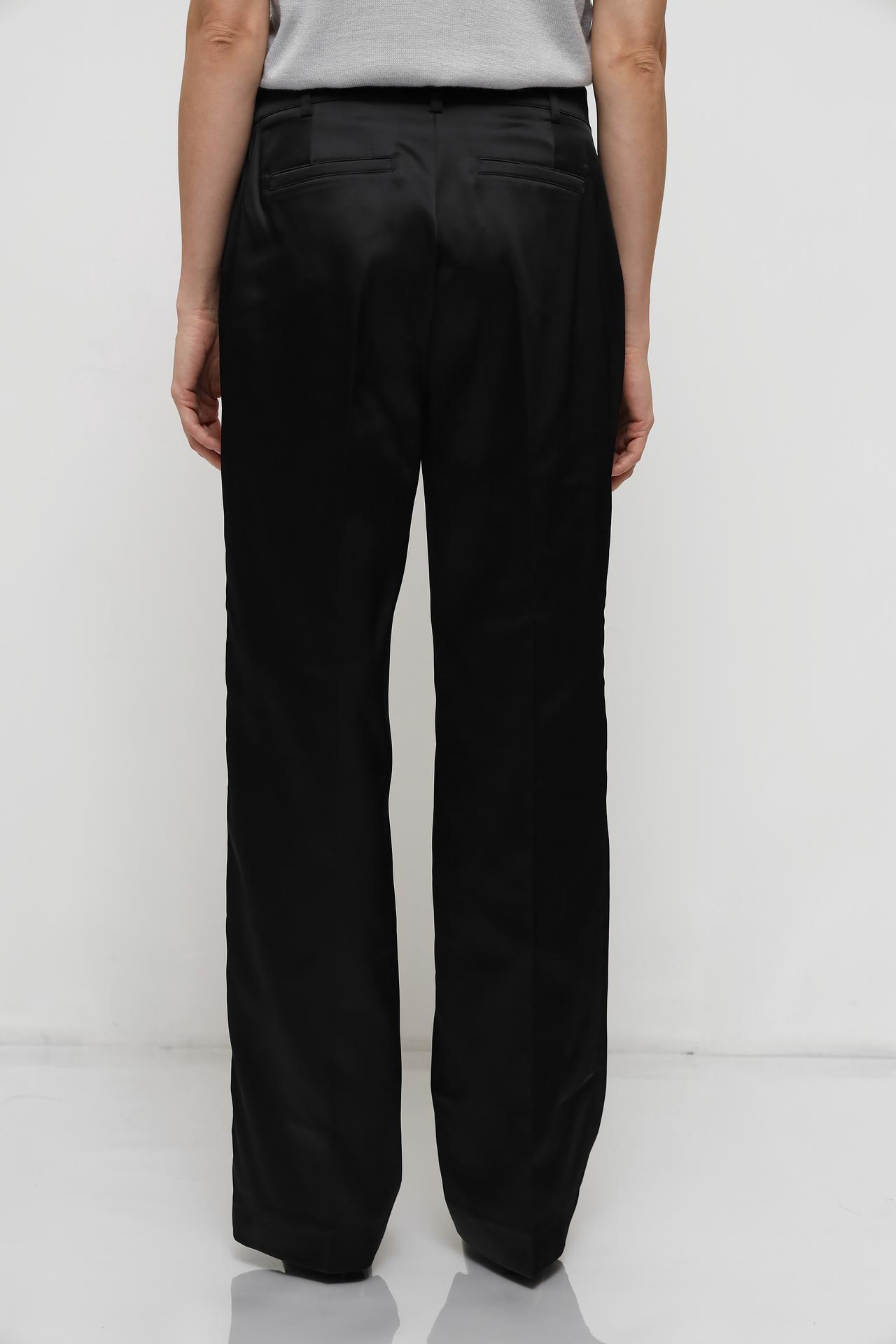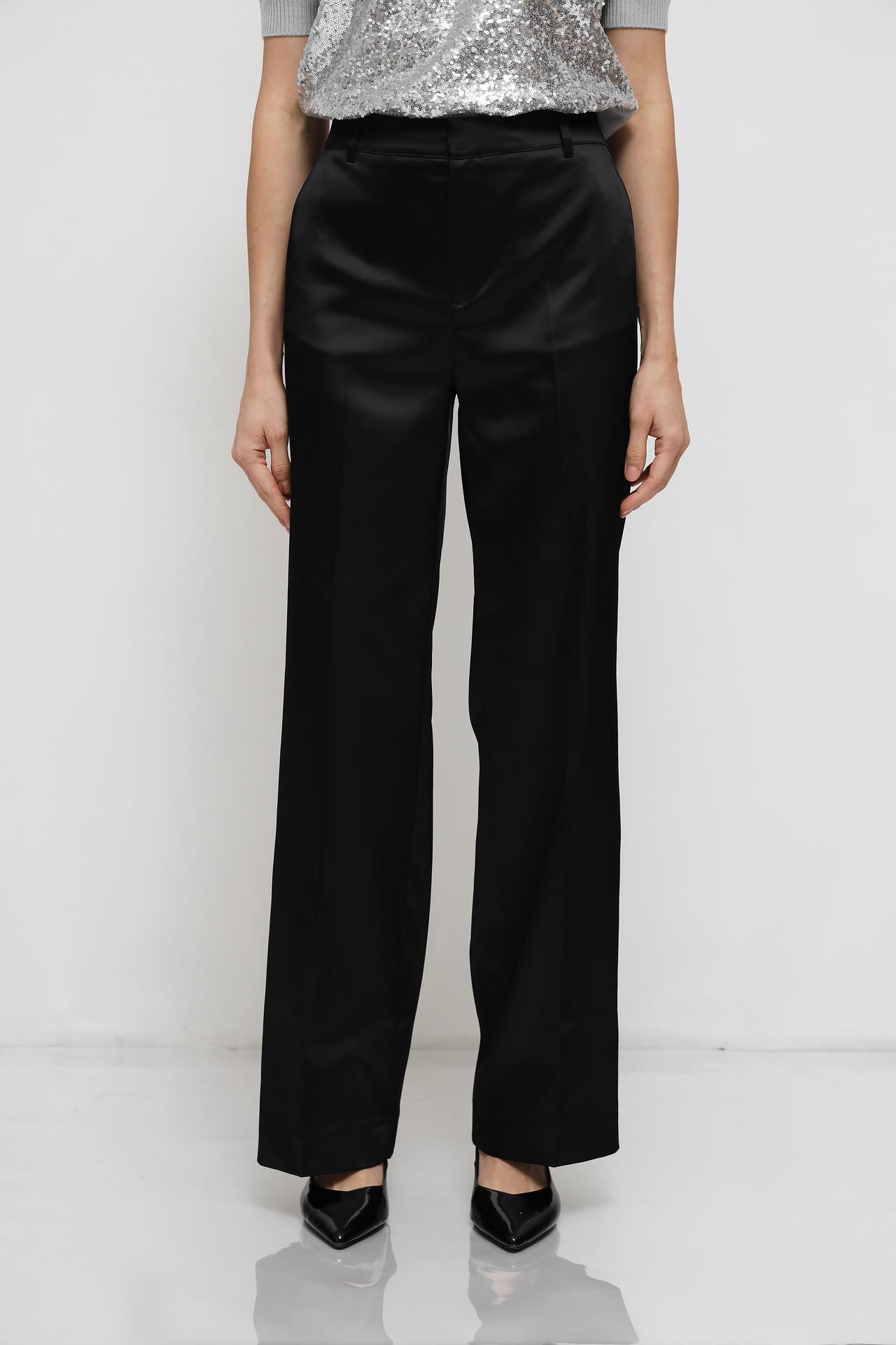 - Универсальность: Черный цвет и прямой силуэт позволяют легко комбинировать брюки с различными элементами одежды, создавая множество стильных комбинаций для работы, встреч или торжественных мероприятий.