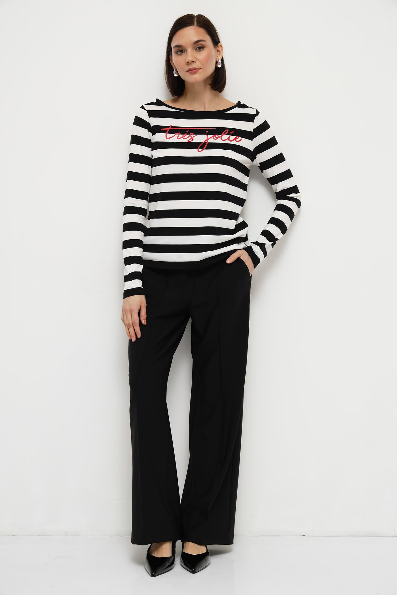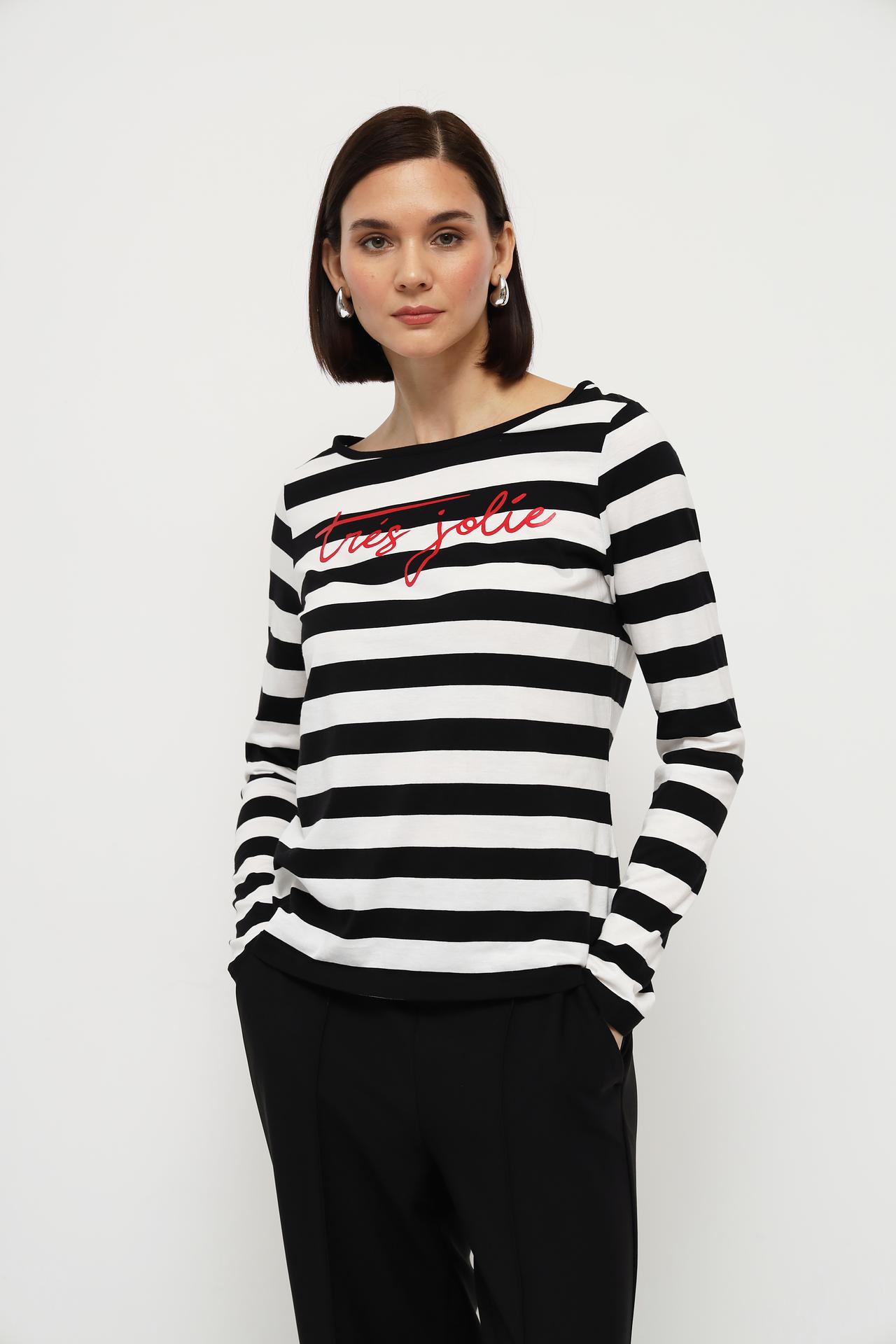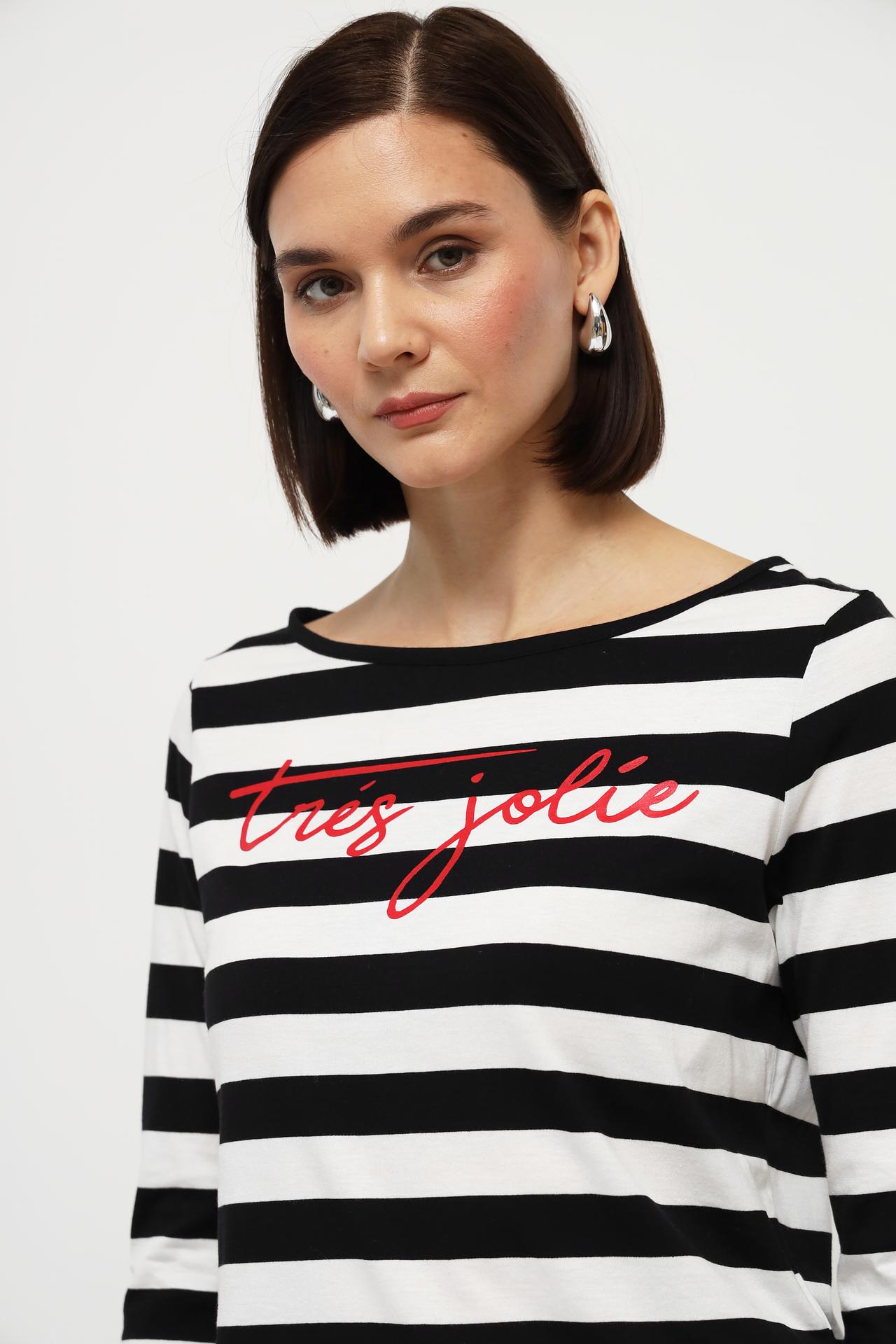 Лонгслив Monari чёрно-белый в полоску с надписью tres jolie