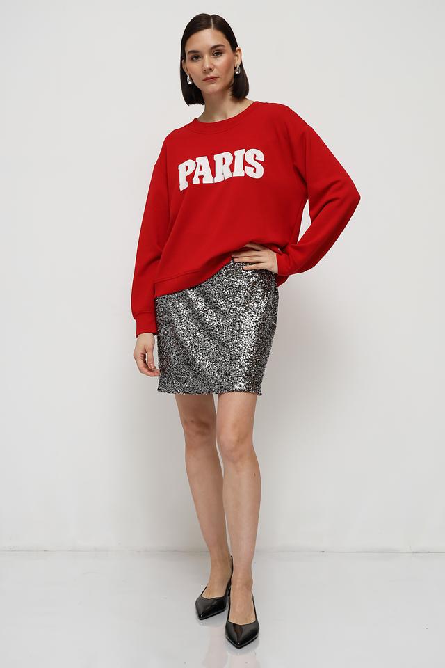 Этот пуловер от Monari станет отличным дополнением к вашему гардеробу. Яркий красный цвет и надпись "Paris" делают его заметным и стильным.