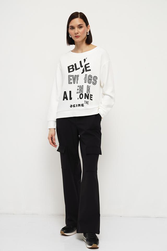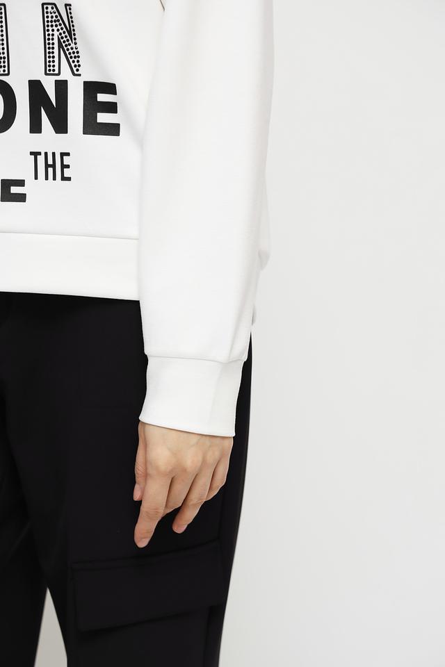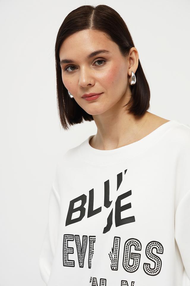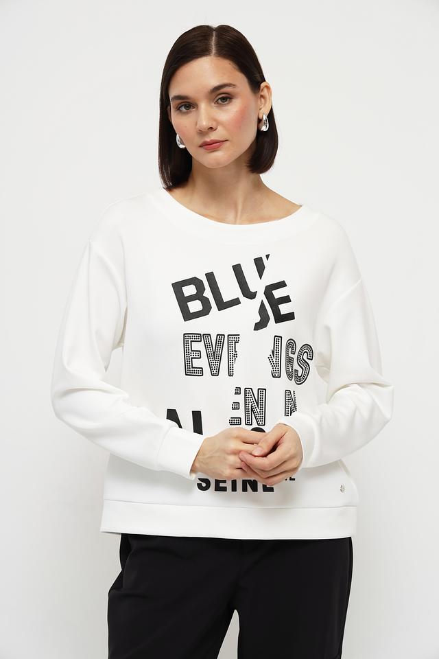 Этот пуловер от Monari станет ярким акцентом в вашем гардеробе. Выполненный в белом цвете, он украшен крупным чёрным принтом с элементами страз, что придает ему оригинальность и привлекательность.