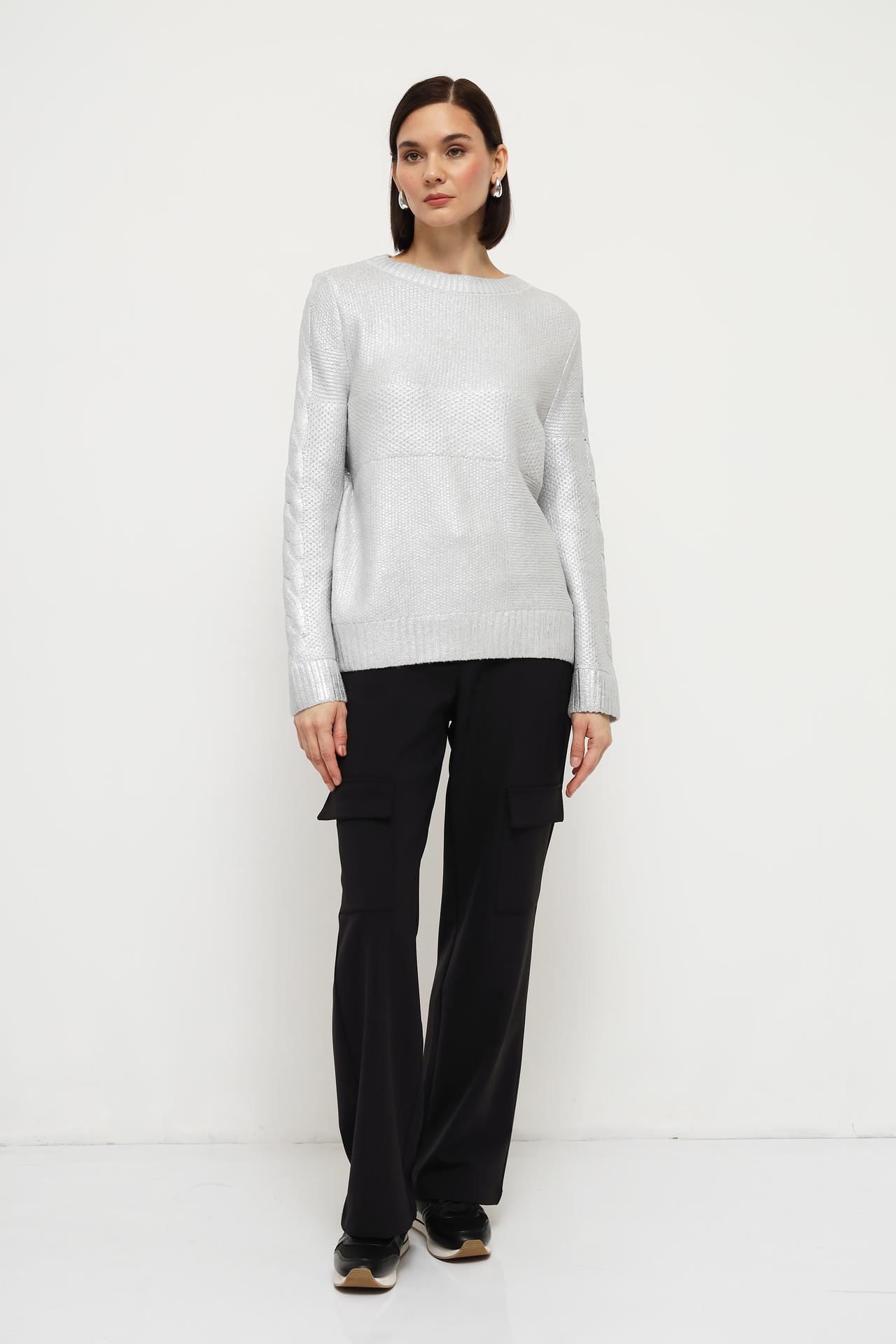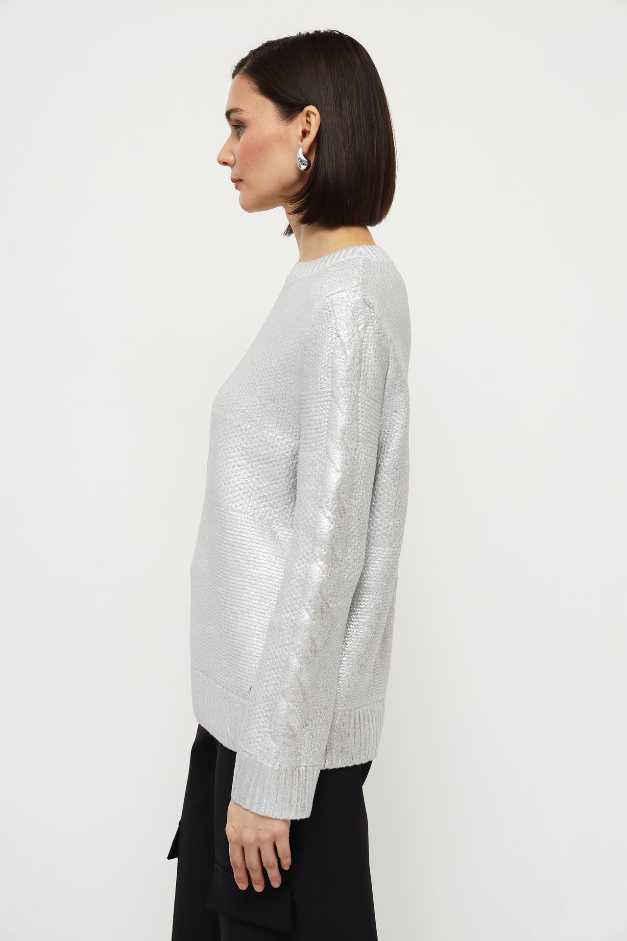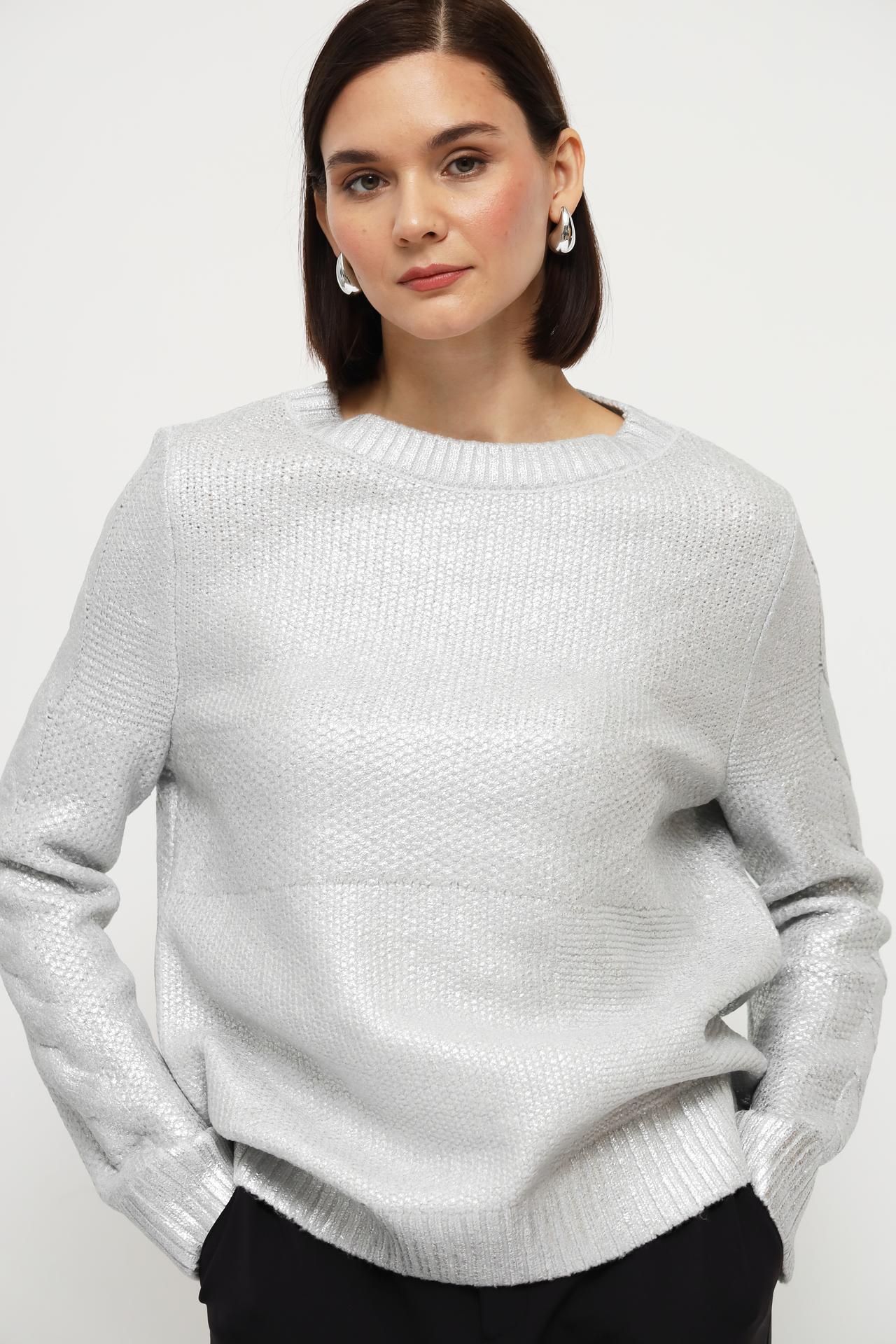 Пуловер от Monari – идеальное сочетание комфорта и стиля. Этот серебристый пуловер станет прекрасным дополнением к вашему гардеробу, добавив нотку изысканности в повседневный образ. Мягкая и приятная на ощупь ткань, состоящая из 31% хлопка, 38% полиакрила, 21% эластана и 10% полиамида, обеспечивает комфорт в течение всего дня. Узор на рукавах придает этому пуловеру особый шарм и индивидуальность.