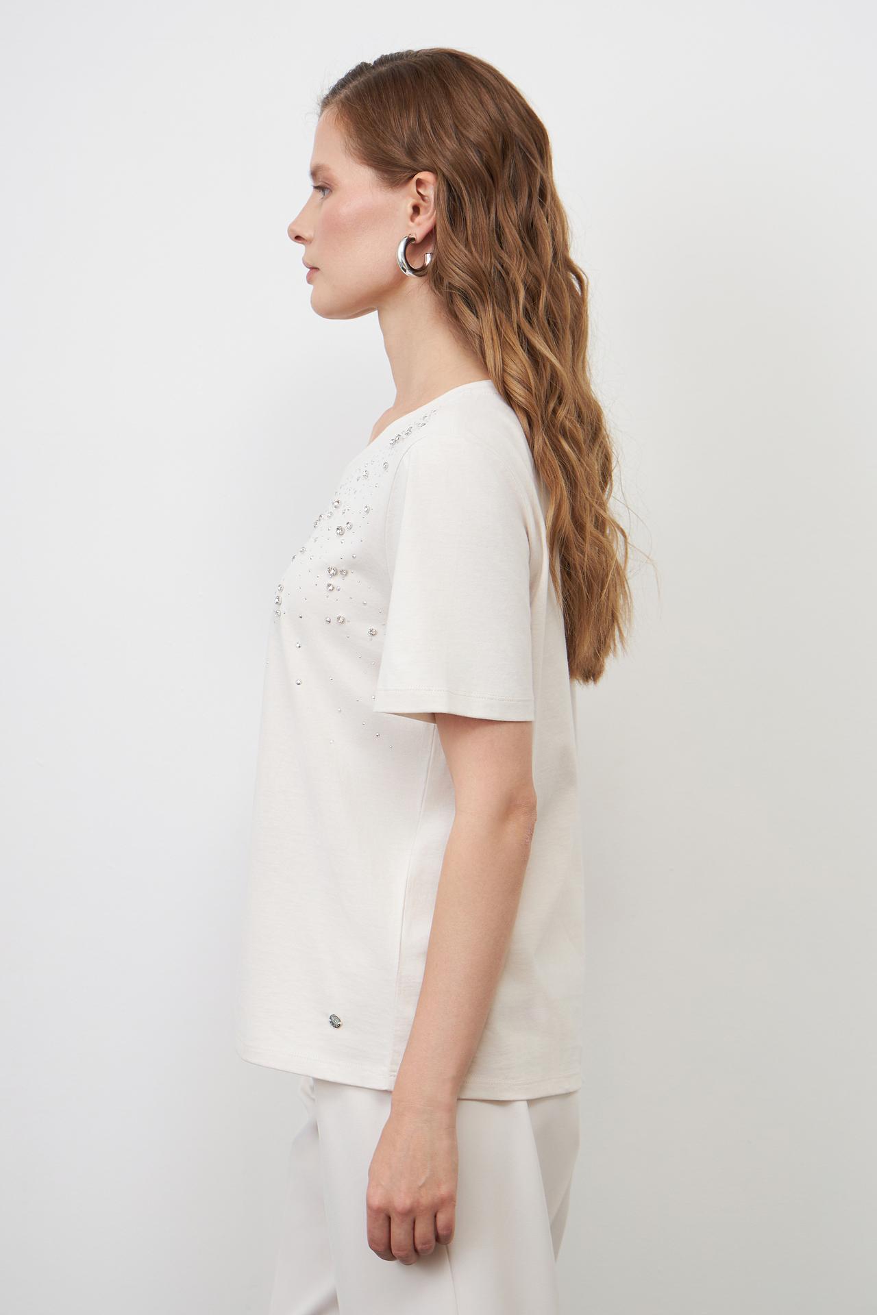 Футболка Monari бежевая со стразами