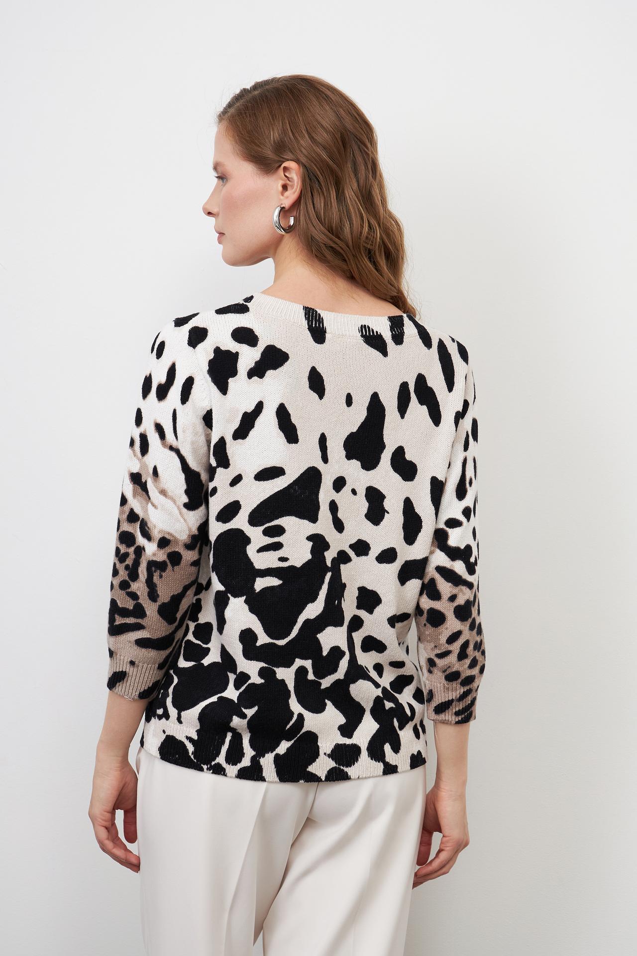 Пуловер Monari женский бежевый с чёрным принтом и стразами
