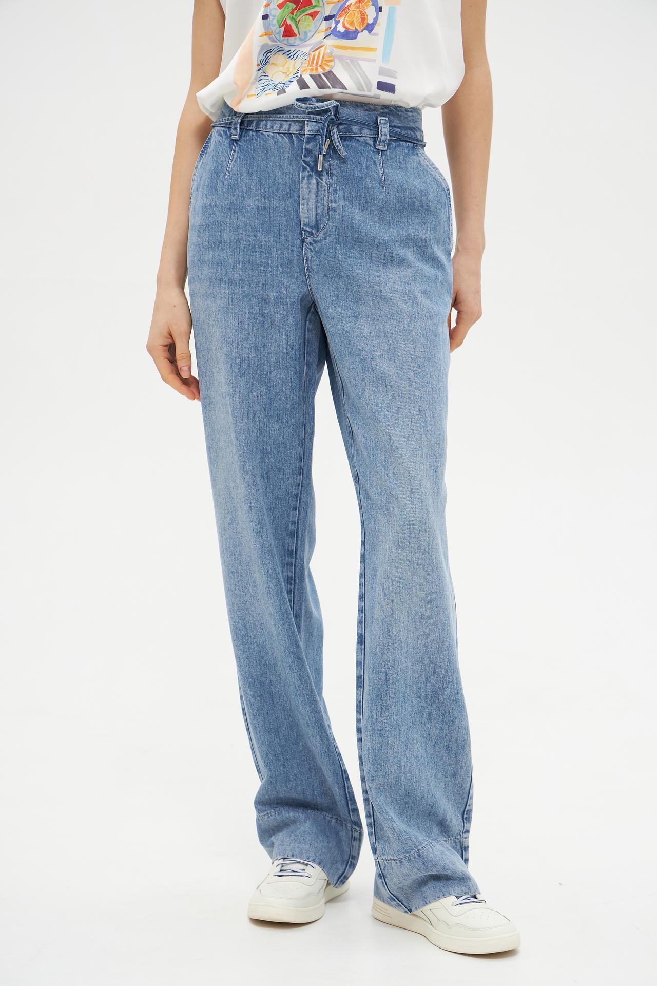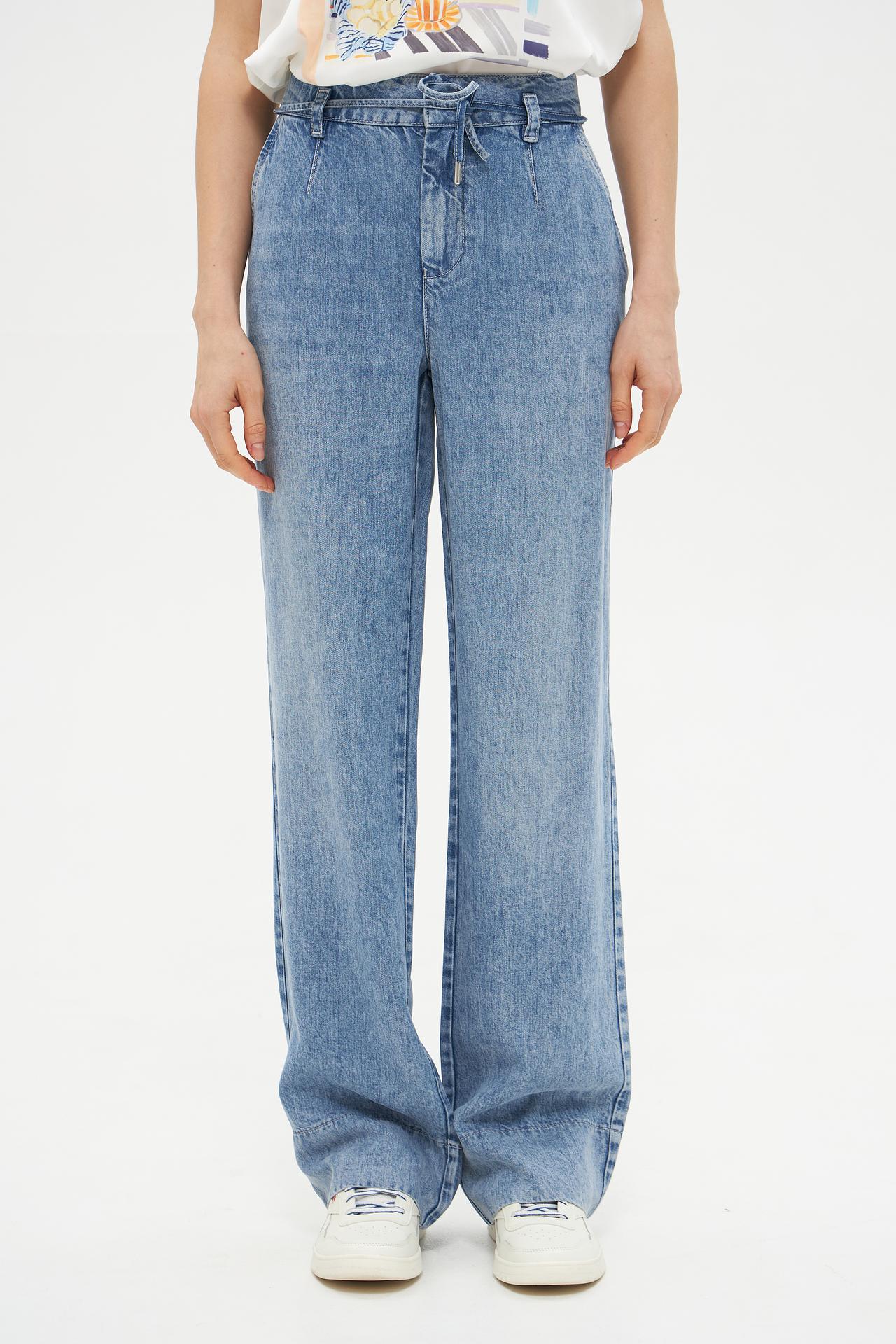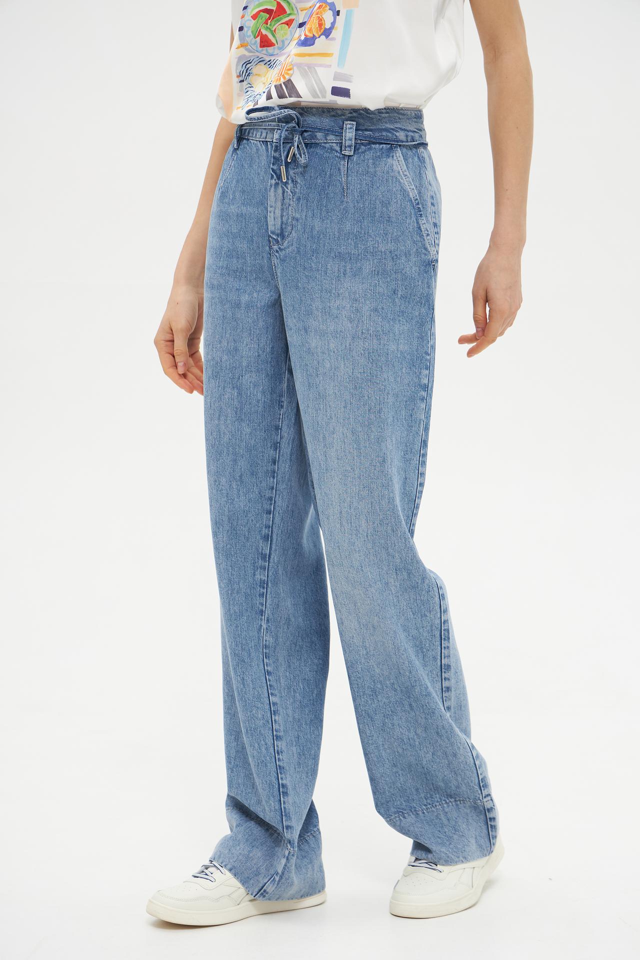 Джинсы Monari широкие светло-голубые с поясом-завязкой