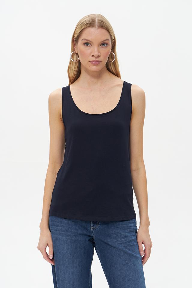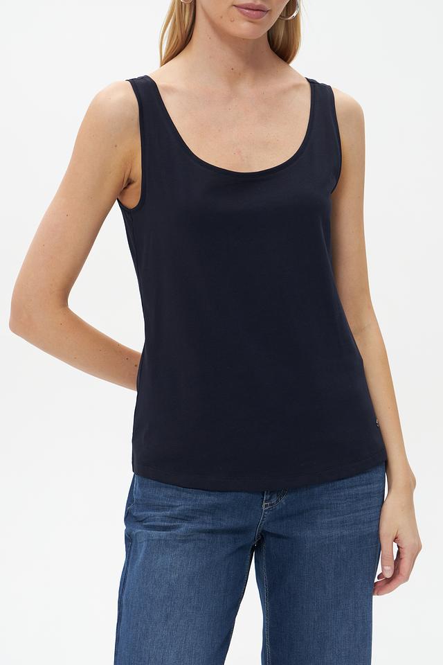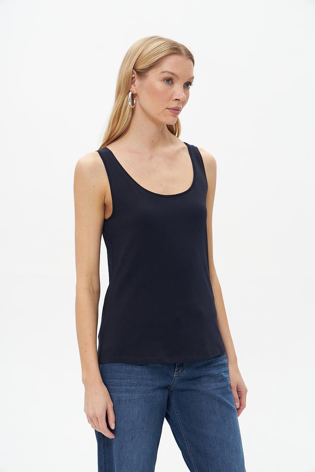 Топ Monari темно-синего цвета станет отличным дополнением к вашему базовому гардеробу. Модель выполнена из мягкого хлопка с добавлением эластана, что обеспечивает комфорт в носке и хорошую посадку по фигуре.