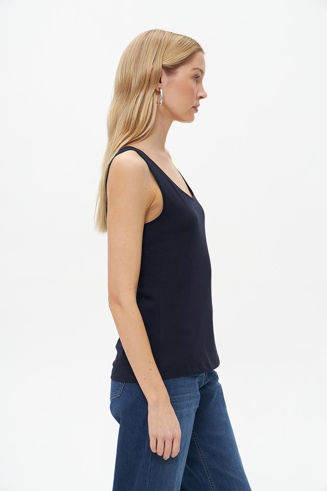 Топ Monari темно-синего цвета — это базовая модель из мягкого хлопка с добавлением эластана. Лаконичный крой и удобная посадка делают этот топ универсальным элементом гардероба. Состав: хлопок 95%, эластан 5%