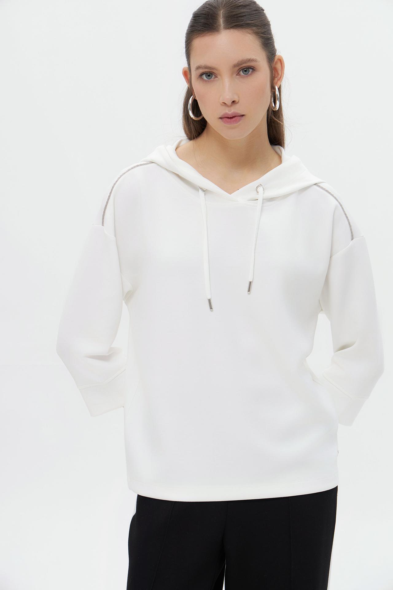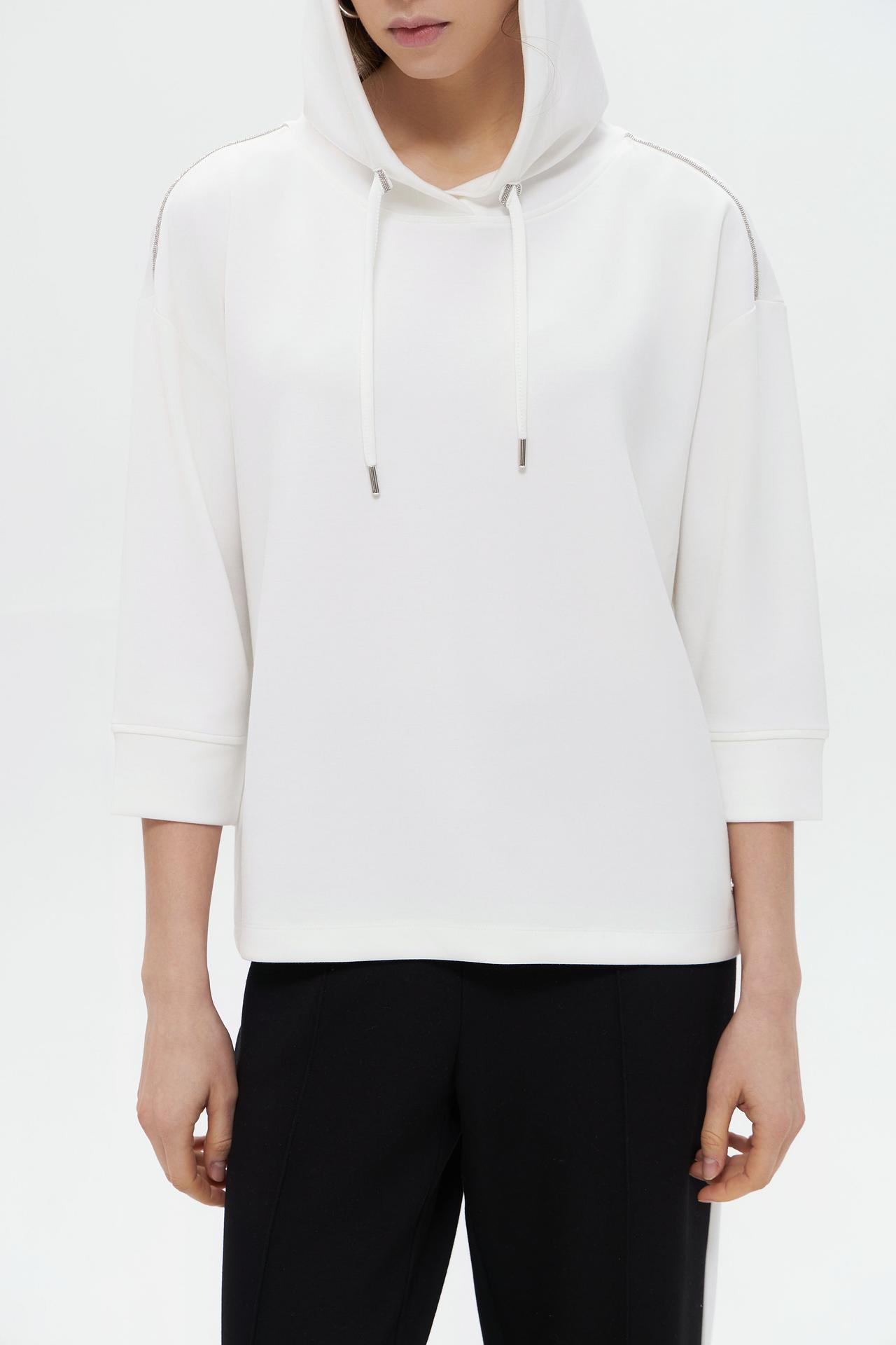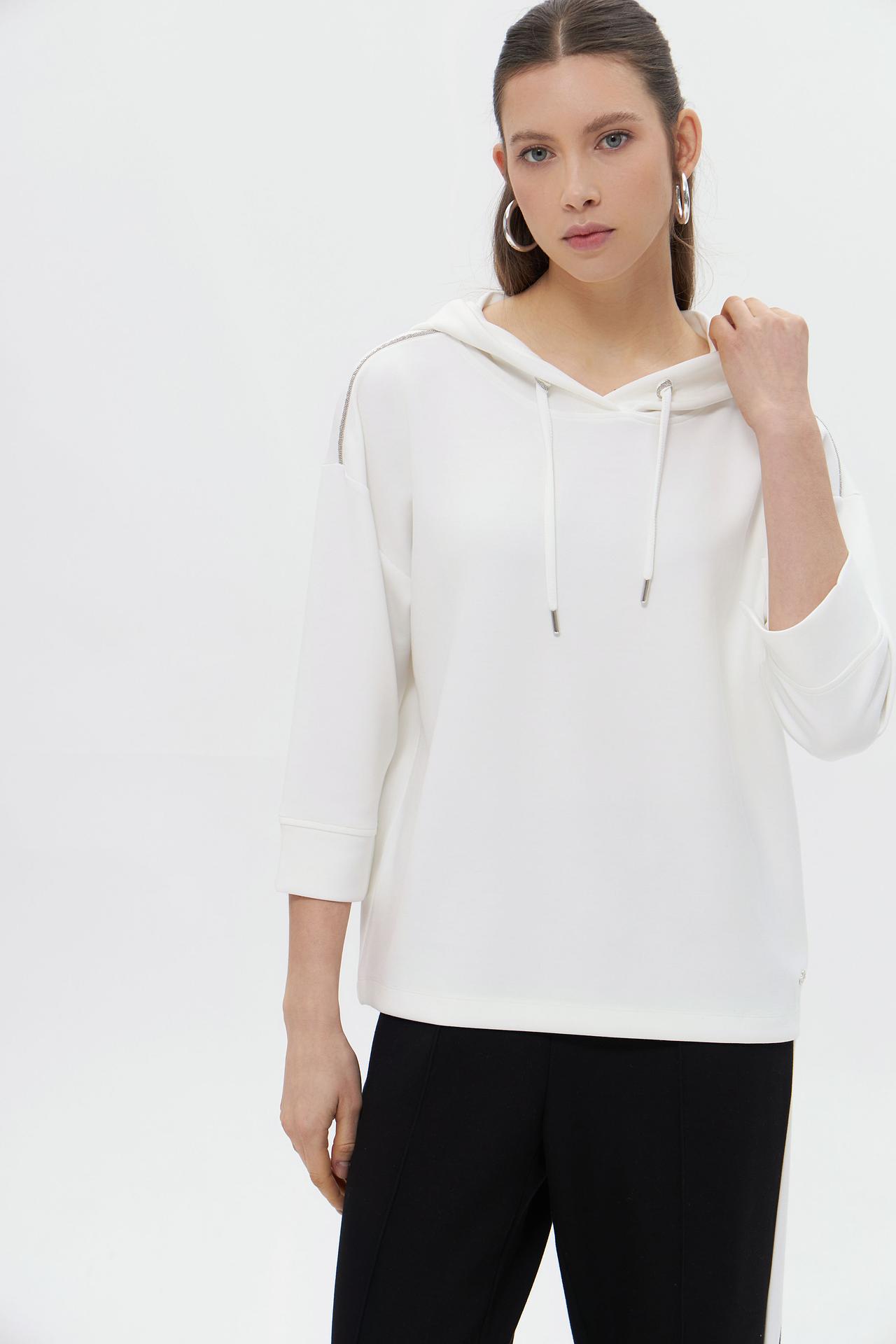 Стильный пуловер Monari с капюшоном и свободным силуэтом – идеальное решение для вашего повседневного гардероба. Изготовлен из уникального сочетания модала, полиэстера и эластана (52% модал, 42% полиэстер, 6% эластан), что обеспечивает исключительный комфорт и долговечность. Модель в чистом белом цвете легко сочетается с любыми элементами гардероба, добавляя образу свежести и элегантности.