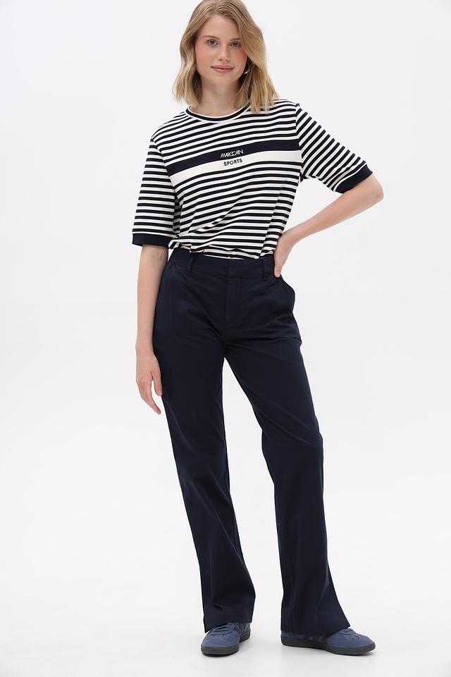 Брюки имеют прямой крой и стандартную посадку по талии. Изготовлены из высококачественного хлопка с добавлением эластана (2%), что обеспечивает комфорт в носке и сохранение формы.