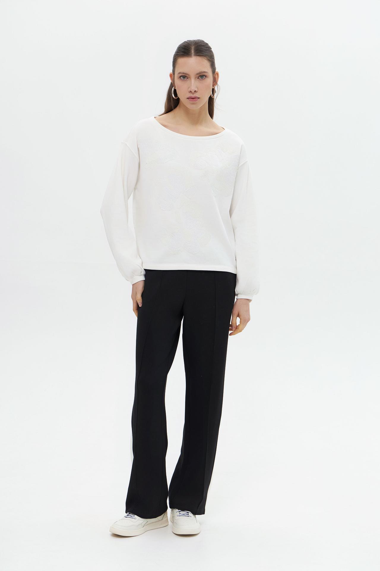- Элегантный дизайн: Нежный цвет и утонченная вышивка делают этот пуловер по-настоящему особенным и женственным.