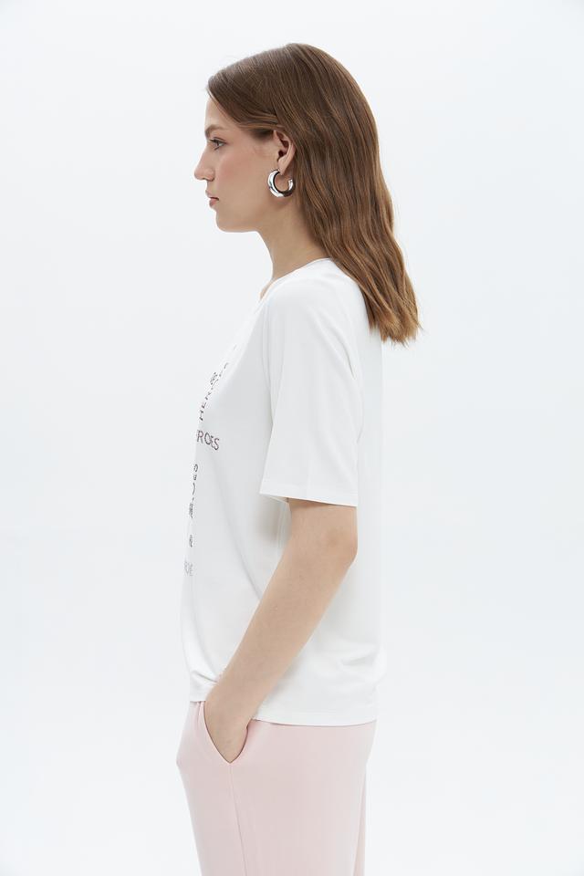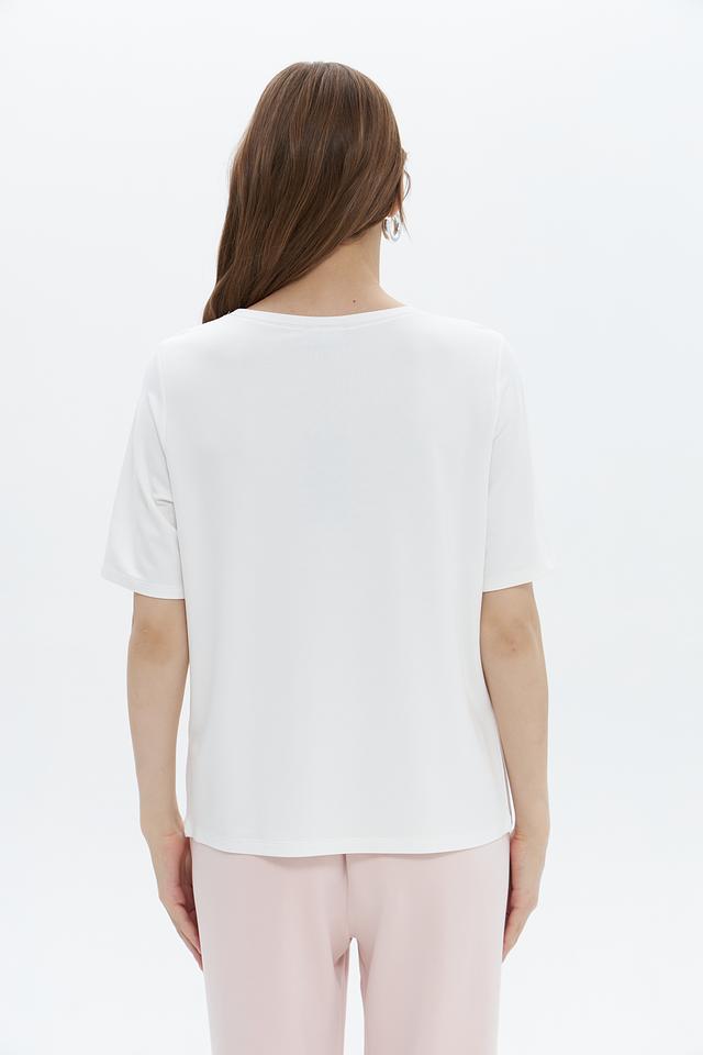 Эта футболка станет отличной базовой вещью в вашем гардеробе, которую можно сочетать с джинсами, брюками, юбками или шортами. Она идеально подходит для создания как повседневных, так и более нарядных образов. Благодаря высокому содержанию вискозы и модала, футболка обладает отличной воздухопроницаемостью и приятна к телу.