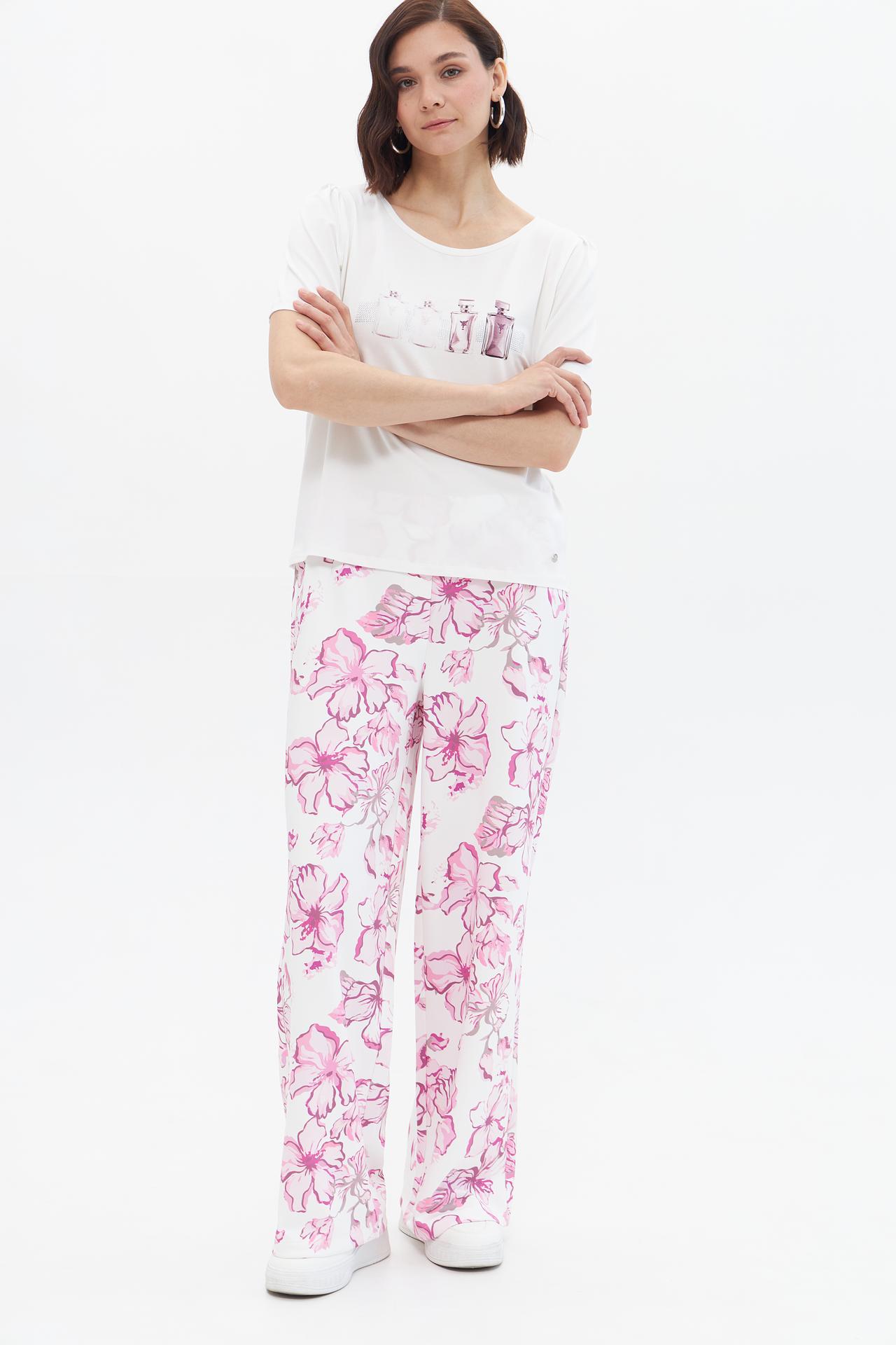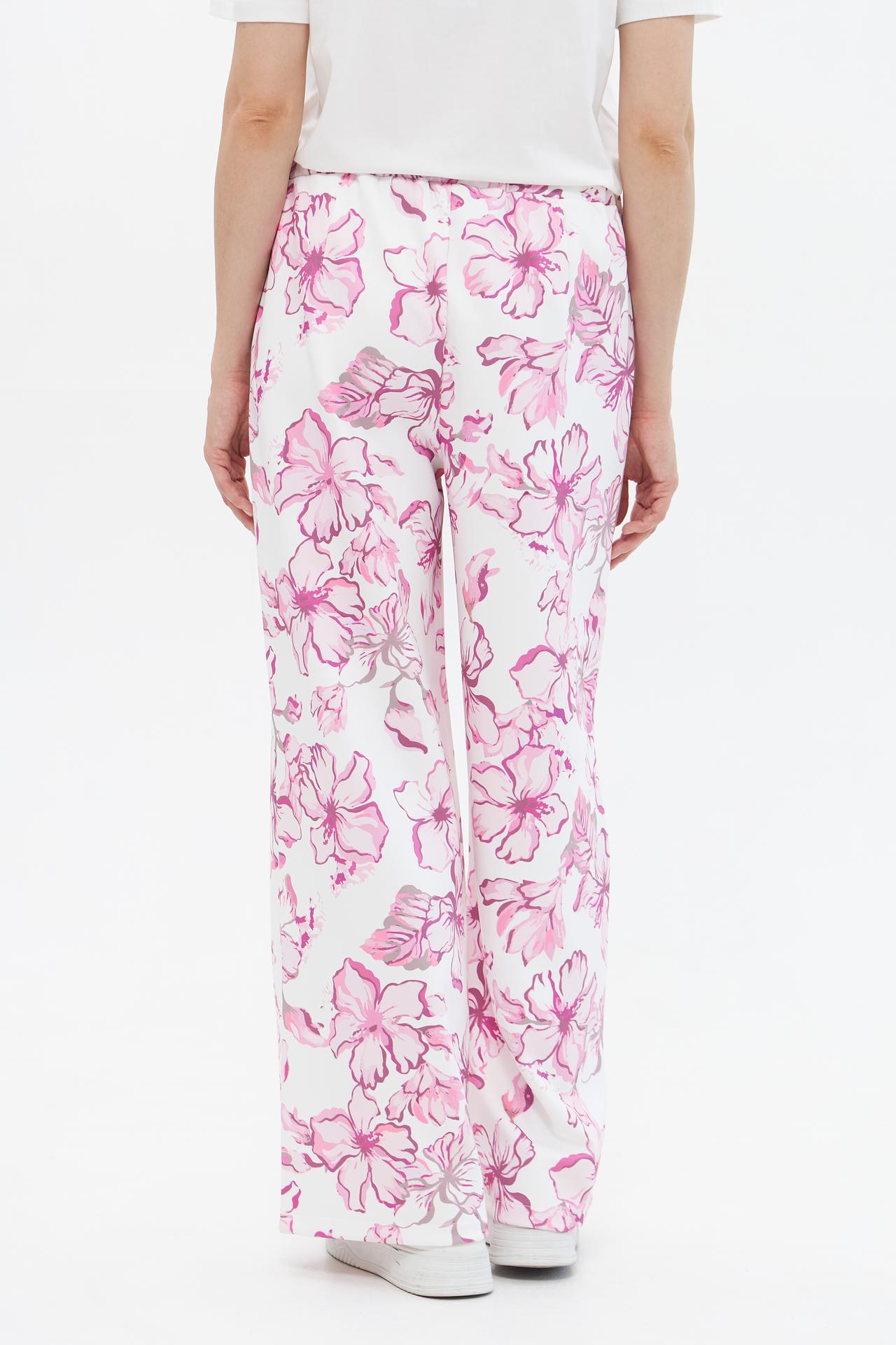 Брюки Monari белые с розовым цветочным принтом