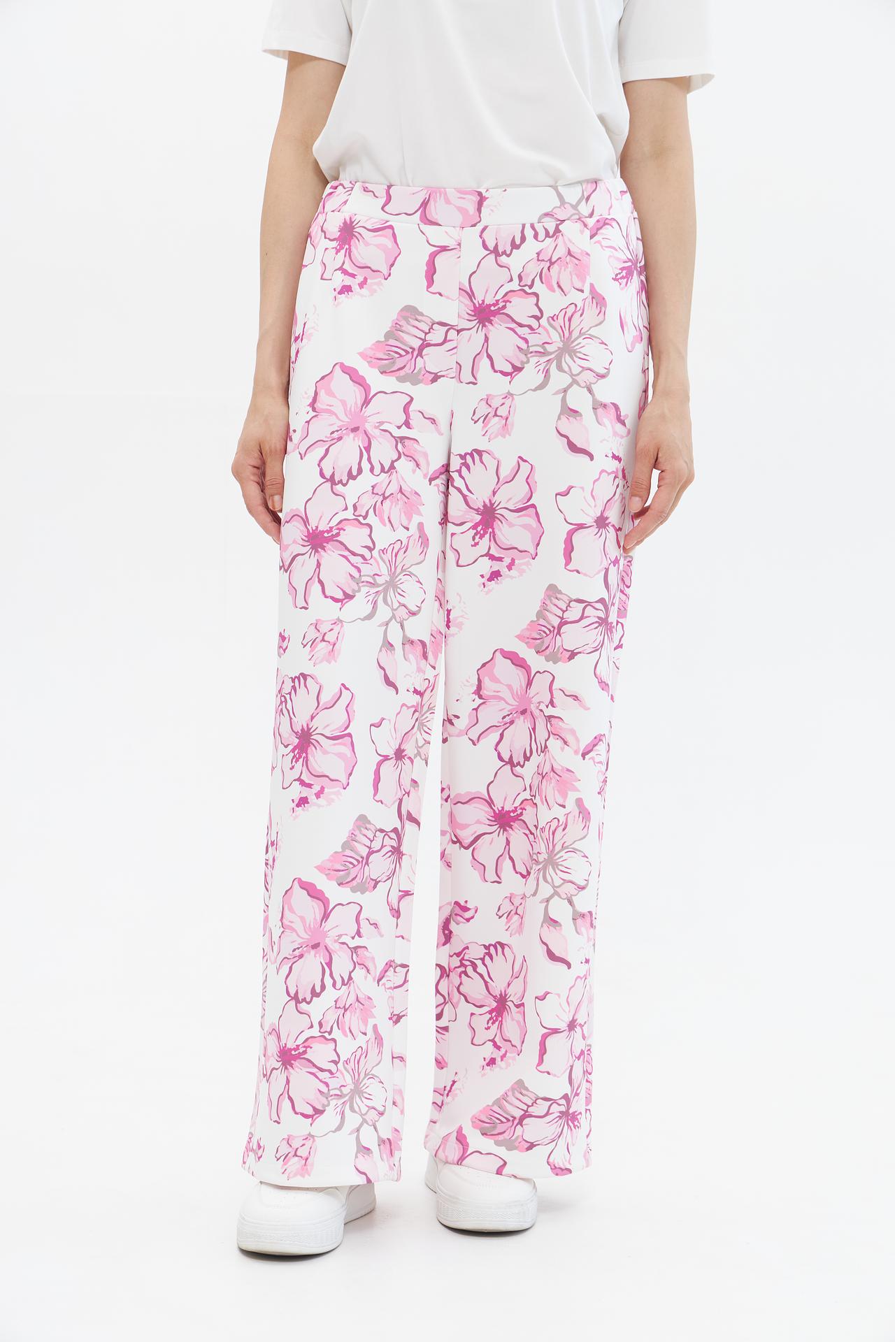 - Дизайн: Яркий цветочный принт придает брюкам свежий и современный вид, делая их отличным выбором для летнего сезона.