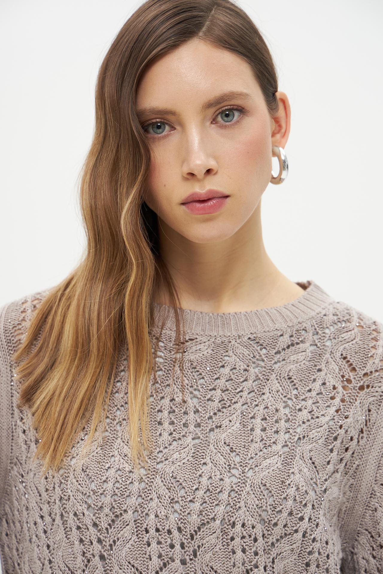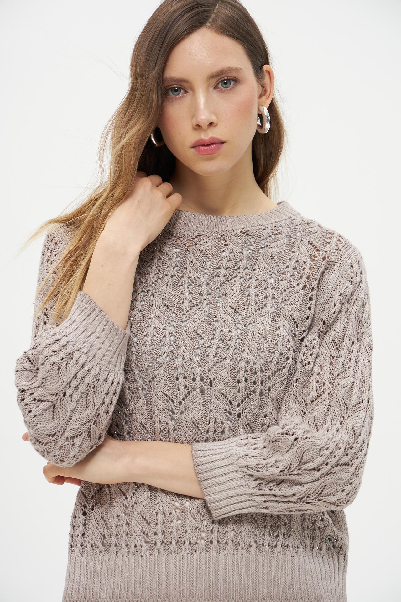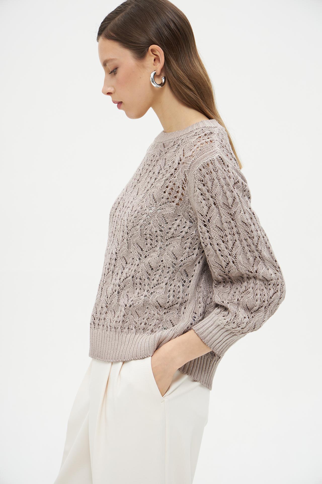 Бежевый вязаный пуловер Monari с ажурным узором