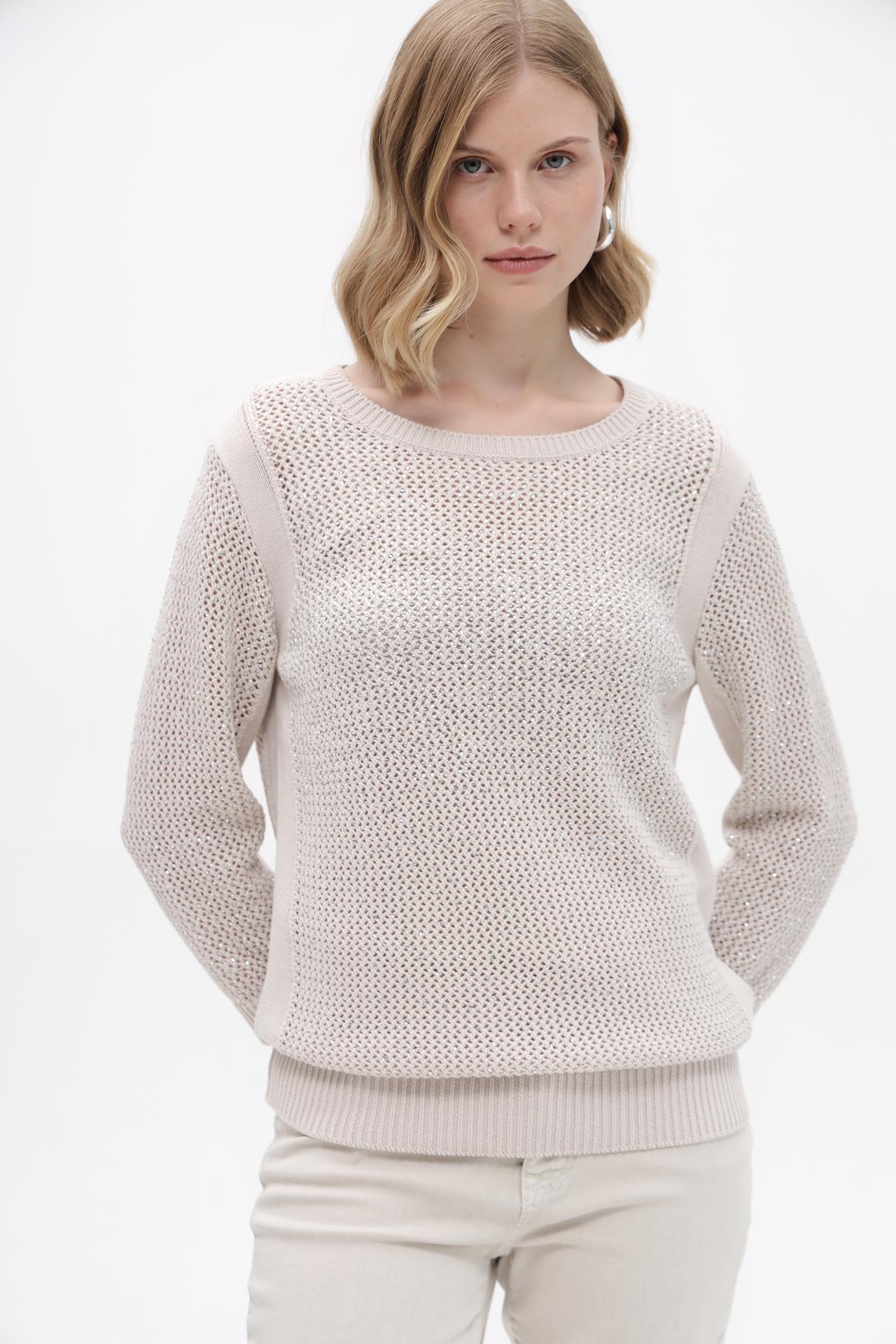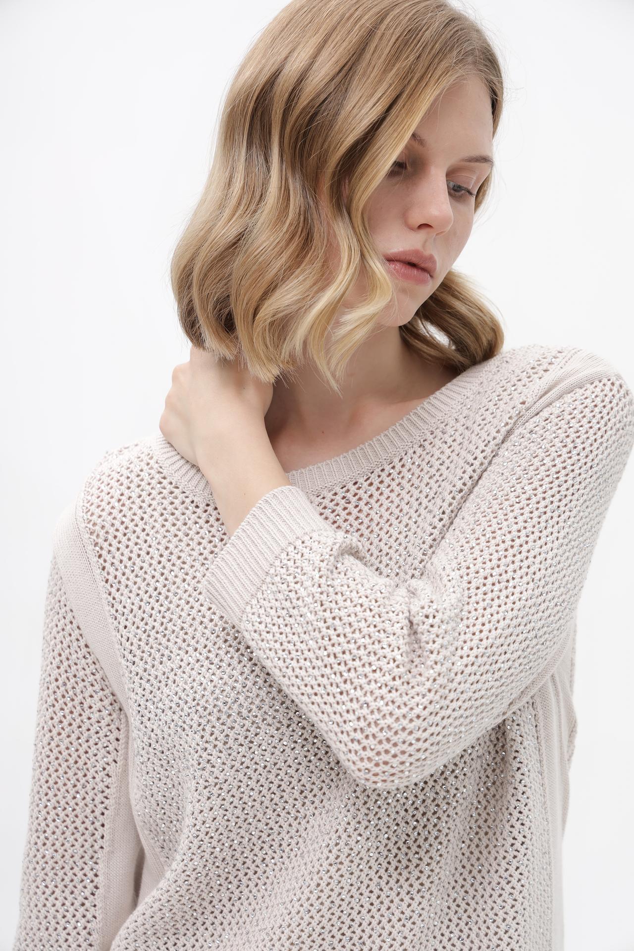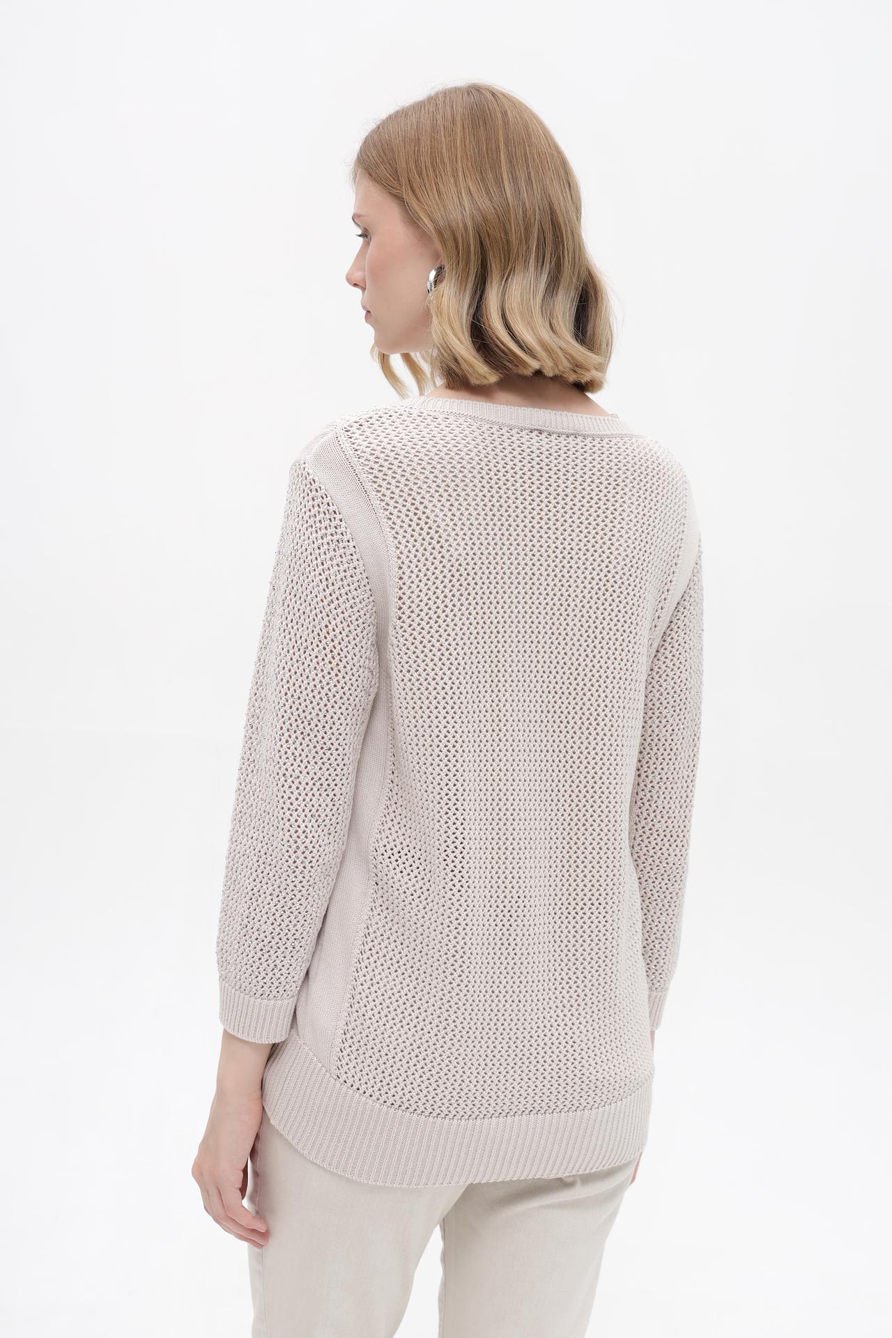 Оригинальный дизайн с ажурной вязкой добавляет изюминку в образ и делает пуловер особенно привлекательным. Модель прекрасно сочетается с джинсами, брюками и юбками, позволяя создавать разнообразные стили.