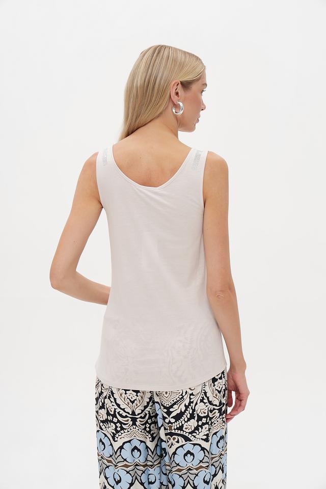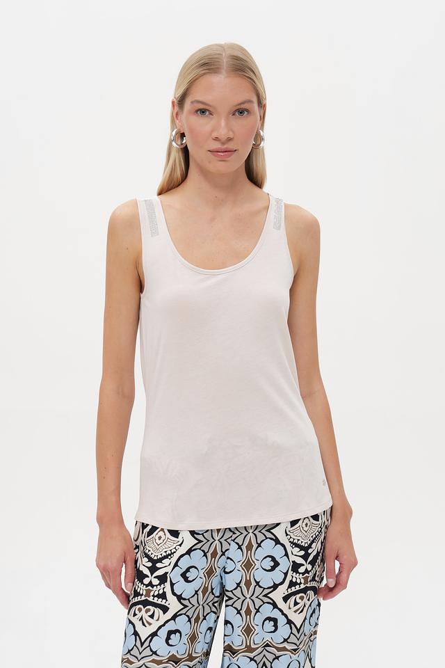 Бежевый топ Monari из хлопка и модала с изящным декором на бретелях. Легкий и комфортный крой идеально подойдет для создания повседневных образов. Состав: хлопок 50%, модал 50%