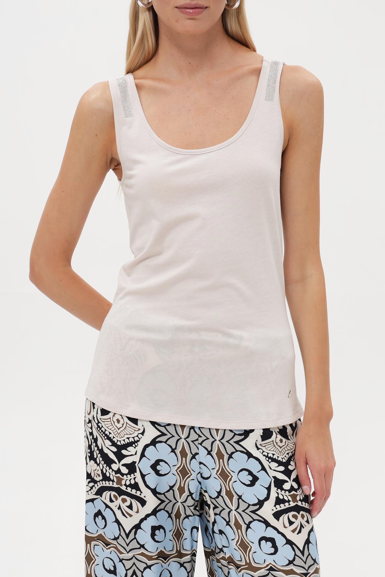 Топ Monari из мягкого и дышащего трикотажа – идеальное дополнение к вашему летнему гардеробу. Этот универсальный женский топ бежевого цвета с минималистичным дизайном легко впишется как в повседневные, так и в более нарядные образы, обеспечивая комфорт в течение всего дня.