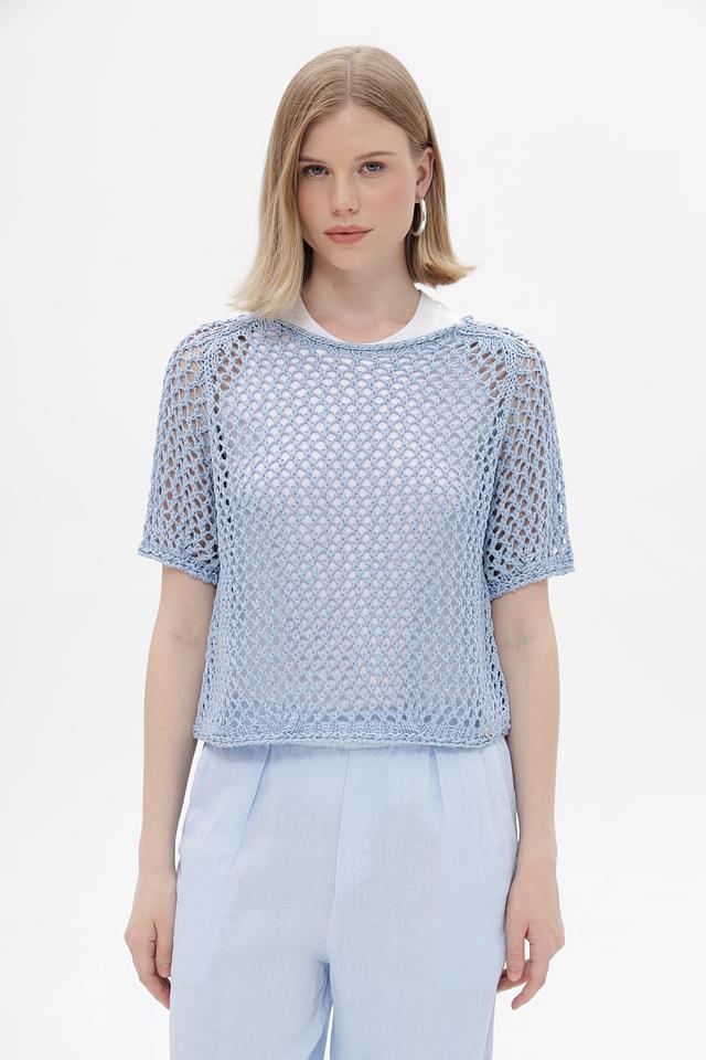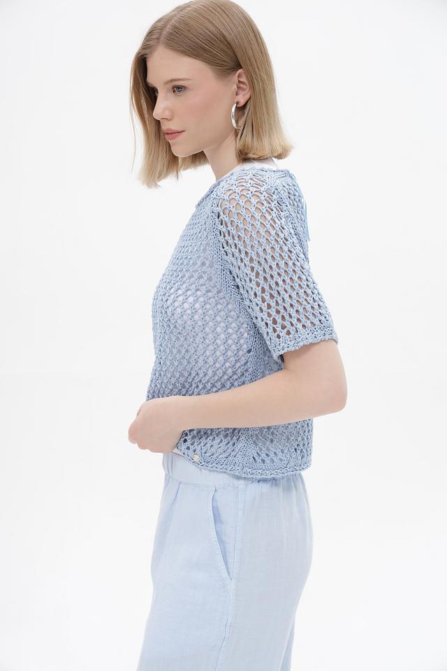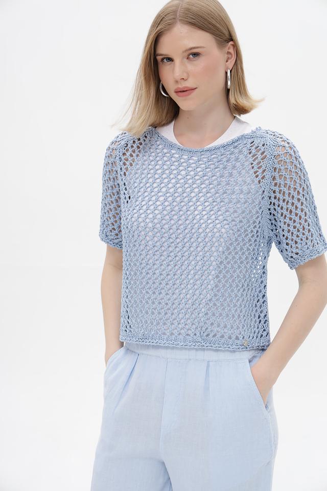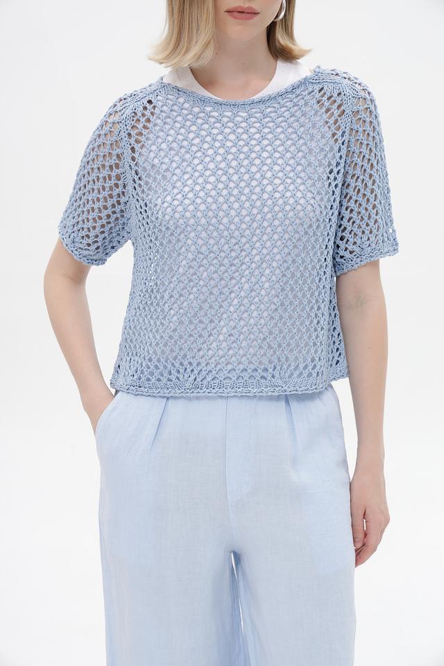 Голубой пуловер от Monari из 100% полиакрила с ажурной вязкой. Легкая и дышащая модель идеальна для летних образов. Состав: полиакрил. Состав: полиакрил 100%