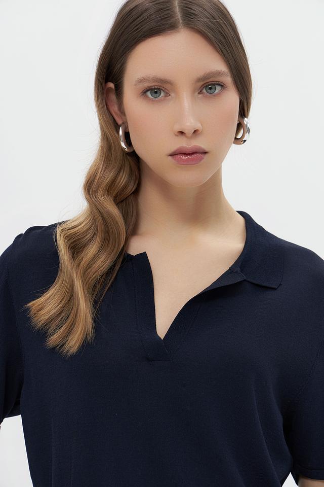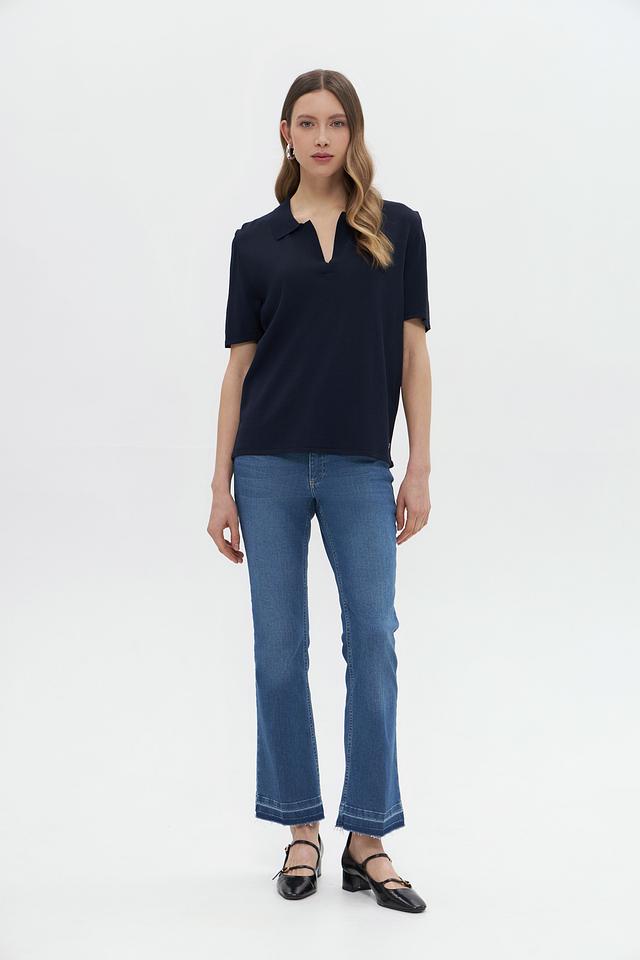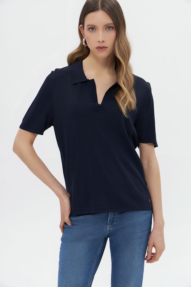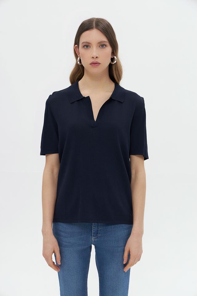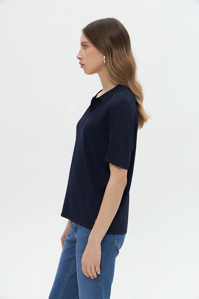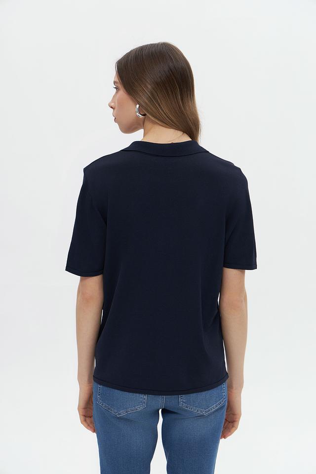 Модель имеет воротник-поло, который придает образу изысканность и сдержанность. Крой пуловера прямой, что обеспечивает комфортную посадку по фигуре. Короткие рукава делают его идеальным выбором для теплой погоды.