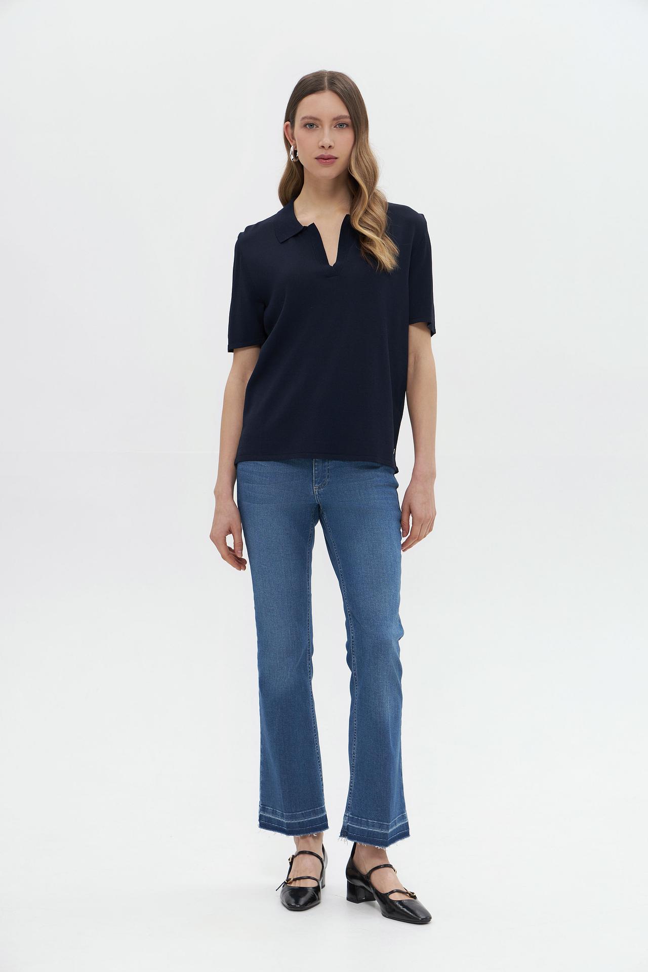 Классический женский пуловер Monari выполнен в глубоком темно-синем оттенке, идеально подходящем для создания элегантных и универсальных образов. Модель с короткими рукавами и актуальным отложным воротником поло, дополненным стильным V-образным вырезом, подчеркивает изящность силуэта. Этот пуловер станет незаменимой вещью в вашем гардеробе, предлагая безупречное сочетание стиля и комфорта.