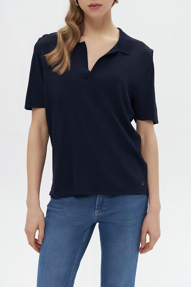 Стильный пуловер Monari темно-синего цвета с воротником-поло. Изготовлен из мягкой вискозы и полиамида, обеспечивающих комфорт и приятные ощущения при носке. Состав: вискоза 63%, полиамид 37%