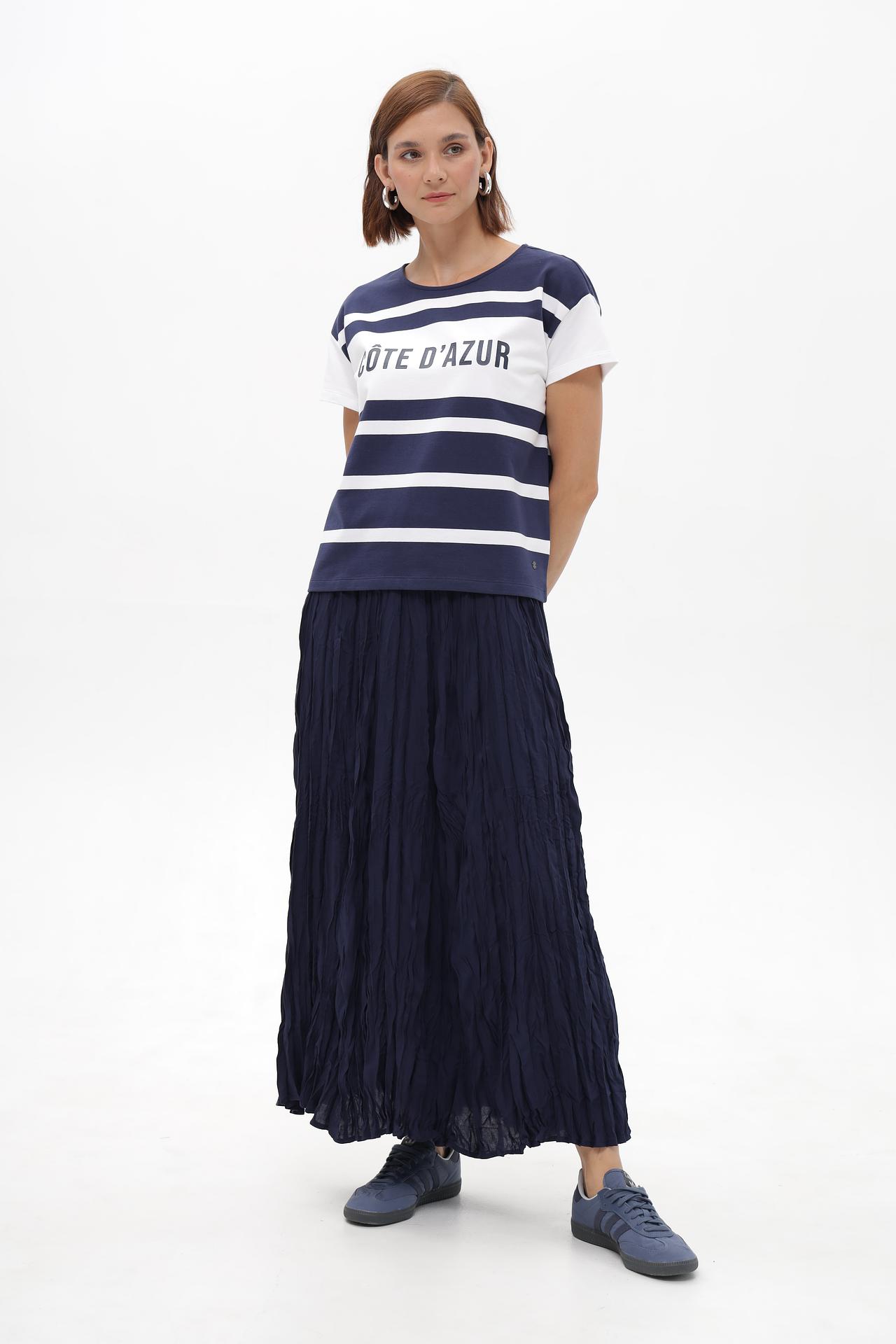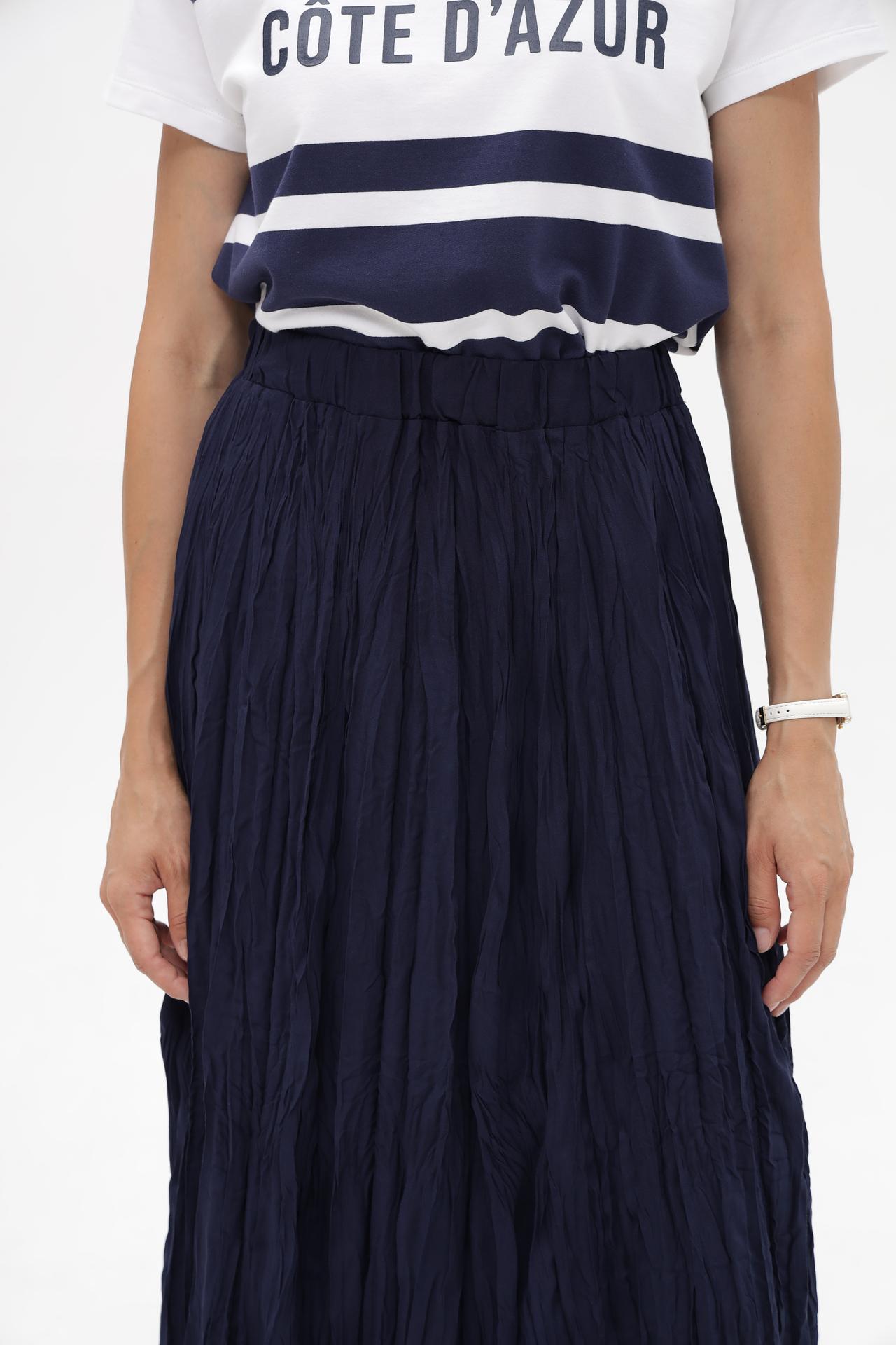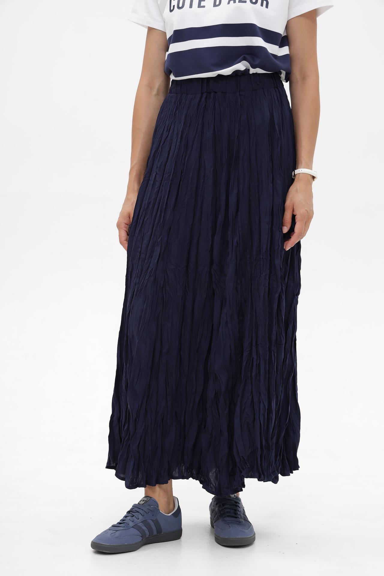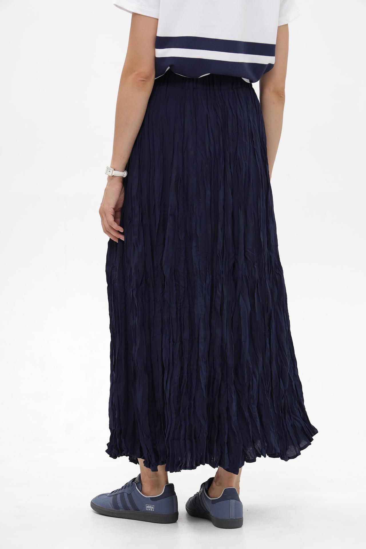 Оригинальная жатая фактура ткани не только придает юбке стильный вид, но и делает ее практичной в уходе. Эластичный пояс гарантирует удобную посадку по талии. Эта юбка макси станет универсальной основой для множества образов: от повседневных с футболкой и кедами до более изысканных с блузой и сандалиями.