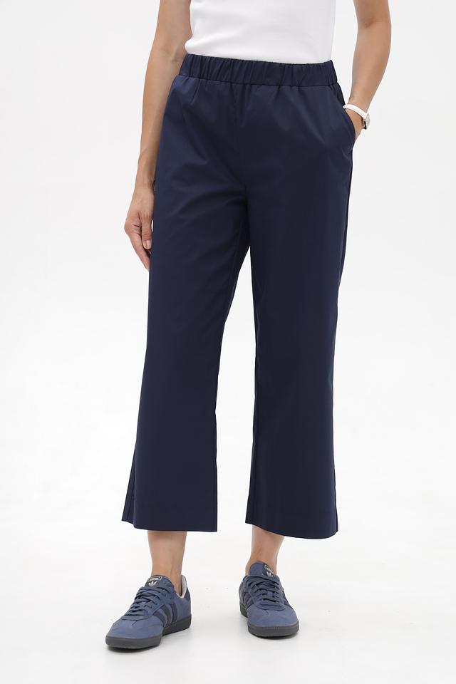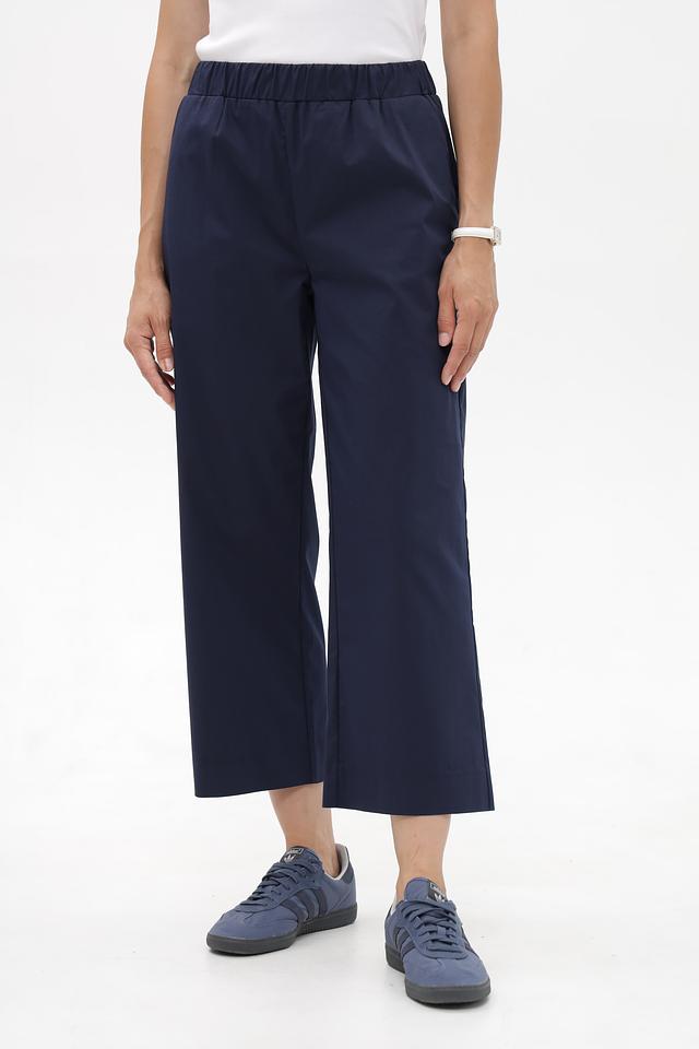 Женские брюки-кюлоты Monari темно-синего цвета, с эластичным поясом и боковыми карманами. Изготовлены из хлопка с добавлением полиамида и эластана, обеспечивающих комфорт и свободу движений. Состав: хлопок 60%, полиамид 37%, эластан 3%