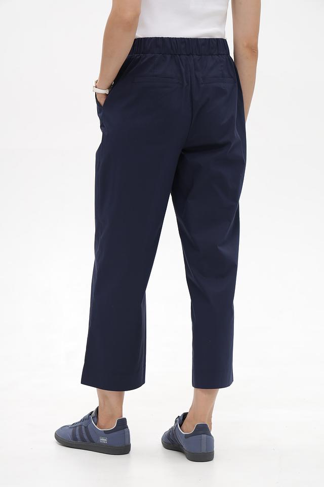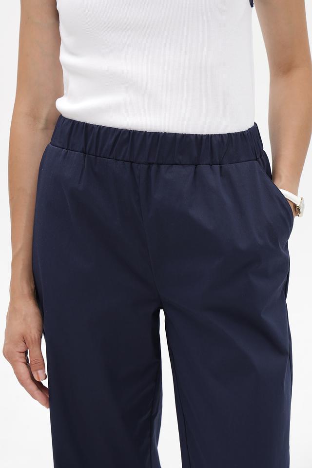 Брюки оснащены эластичным поясом, обеспечивающим комфортную посадку по фигуре. Предусмотрены два боковых кармана.
