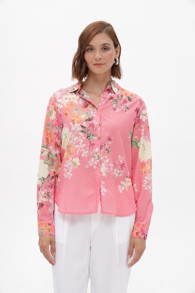 Розовая блузка Monari с ярким цветочным принтом станет отличным дополнением к вашему гардеробу. Изготовлена из мягкого и приятного к телу хлопка с добавлением модала. Состав: хлопок 55%, модал 45%