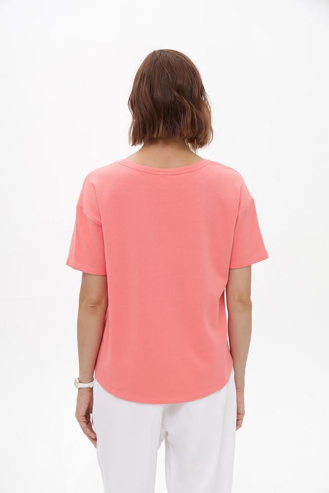 - Дизайн. Современный крой и модный коралловый цвет позволяют легко сочетать футболку с различными элементами гардероба.