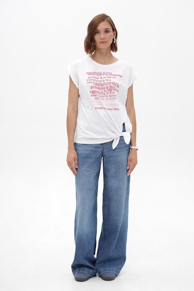 Изготовлена из 100% хлопка, что делает ее приятной к телу и позволяет коже дышать. Эта футболка станет отличным дополнением к вашему летнему гардеробу и позволит создать множество стильных образов.