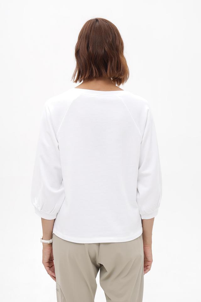 Модель имеет свободный крой, что обеспечивает комфорт в носке, а рукава длиной 3/4 делают её актуальной для любого времени года.