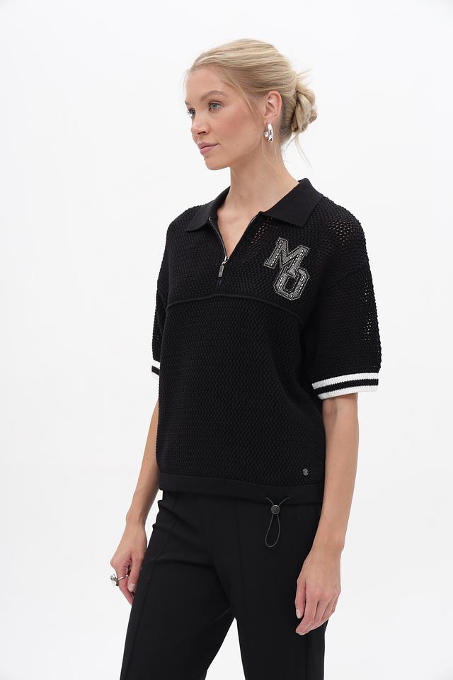 Чёрный пуловер Monari из 100% хлопка с короткими рукавами и оригинальным дизайном. Модель дополнена застёжкой-молнией и декоративной вышивкой с логотипом бренда. Состав: хлопок 100%