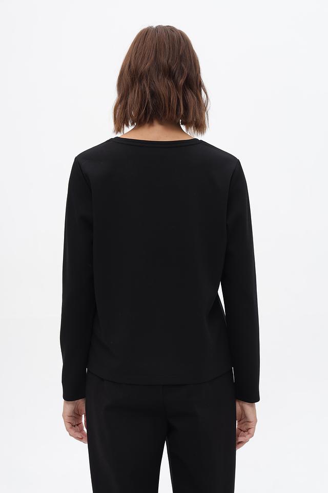 Чёрный пуловер Monari с надписью "Montana Spirit" и логотипом. Изготовлен из мягкой смеси полиэстера, вискозы и эластана, обеспечивающей комфорт и удобство в носке. Состав: полиэстер 55%, вискоза 38%, эластан 7%