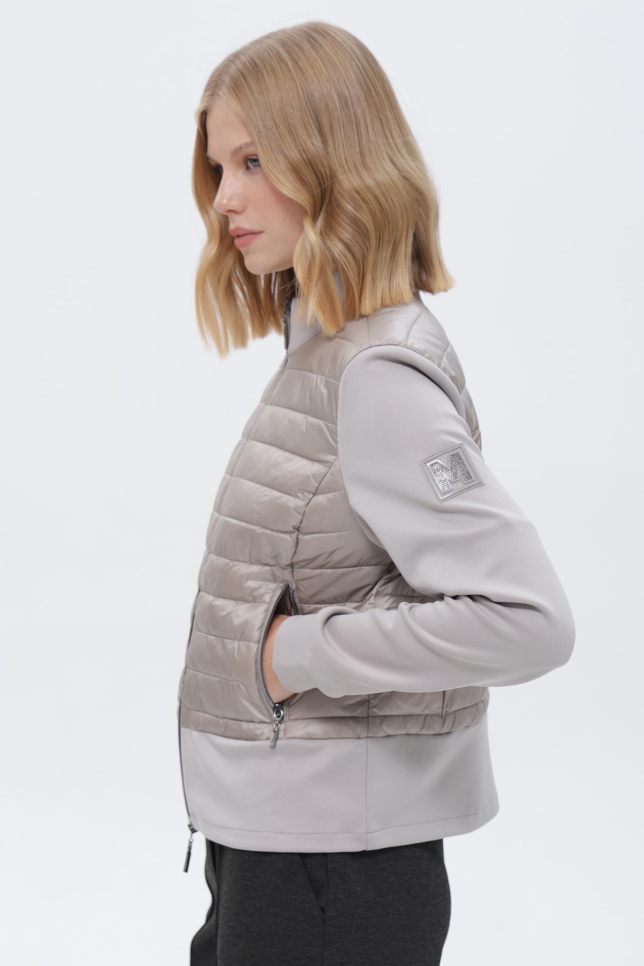 - Современный дизайн: Минималистичный крой и сочетание различных фактур создают актуальный внешний вид. Декоративная нашивка с логотипом бренда на рукаве добавляет изысканности.