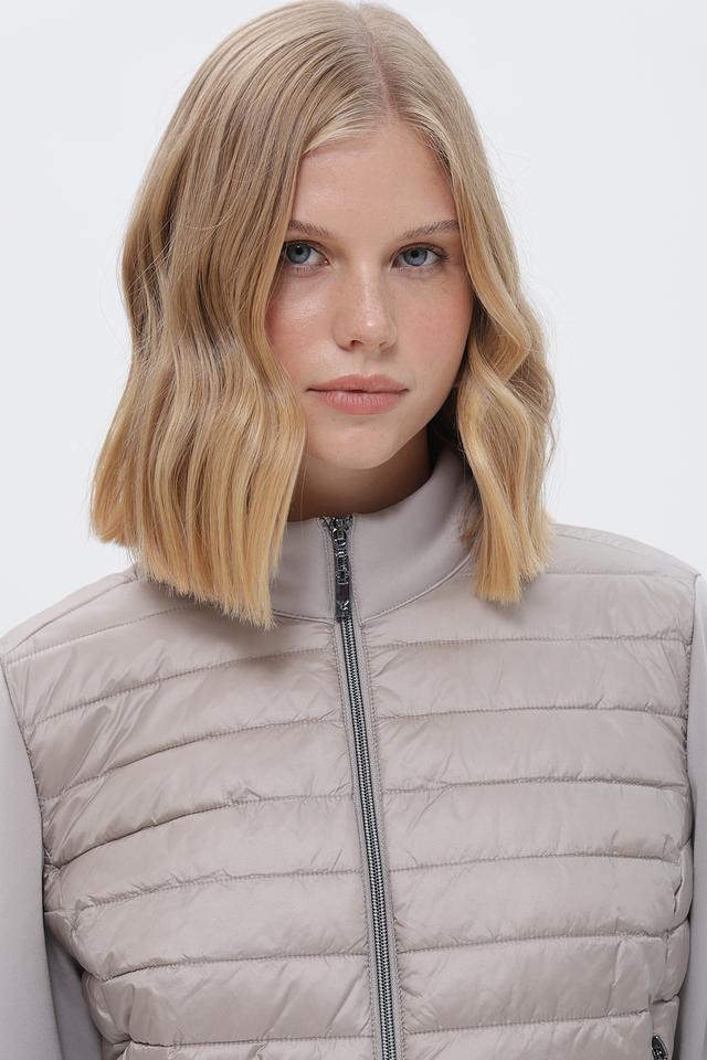 Стильная куртка-жилет Monari серого цвета с комбинированным дизайном. Изготовлена из полиэстера с добавлением эластана для комфорта и свободы движений. Удобная модель для создания многослойных образов. Состав: полиэстер 92%, эластан 8%
